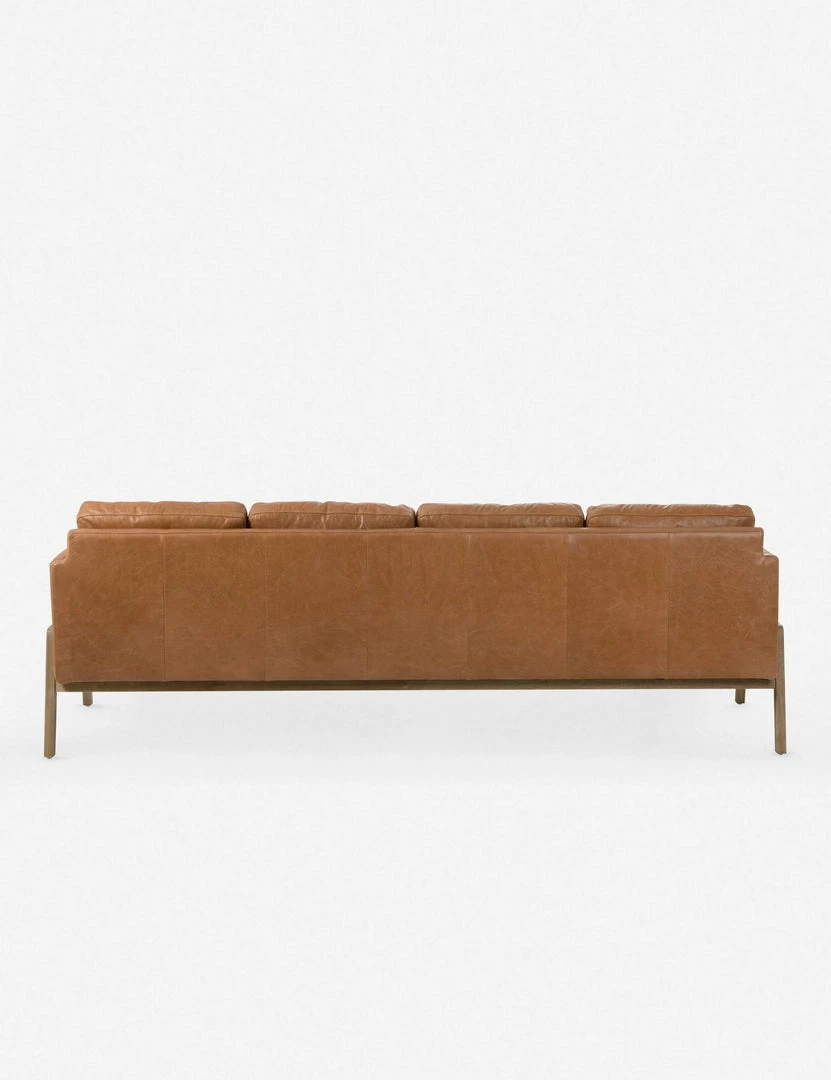 A timeless sofa with a contemporary twist. Complete with performance fabric cushions and an angled wooden frame, it features elements of both modern and traditional aesthetics for a versatile style statement.