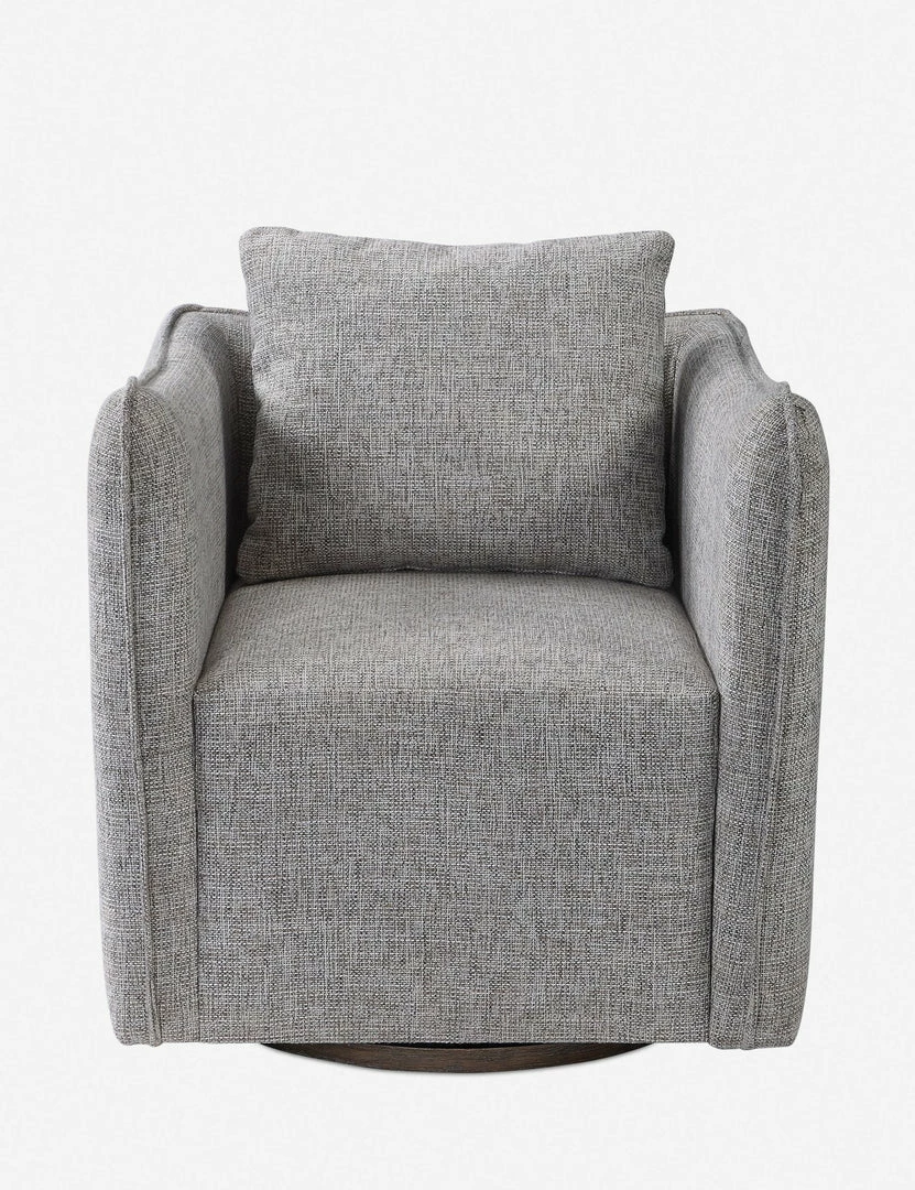 Give this swivel chair a spin in your contemporary living room. It features a plush upholstered finish with flanged seams.