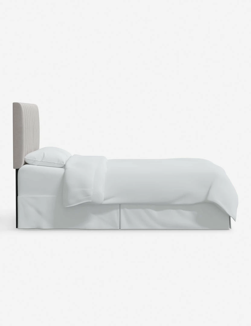 Channel tufting lends a modern tone to this upholstered headboard design. Style a statement-making art piece above your bed and let its clean vertical lines draw the eye to a dynamic focal point. In a variety of colors and fabrics, this headboard attaches to any standard bed frame for a fresh bedroom look.