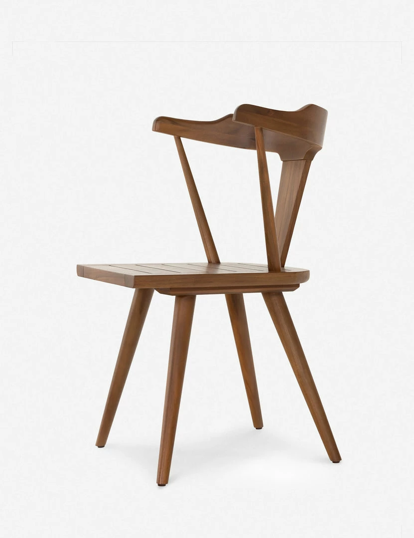 The mid-century Windsor reimagined in an outdoor-friendly style. Fashioned from solid teak, a contoured back and spindle legs come together in this beautifully sculpted dining seat. Whether looking for a dynamic kitchen chair or styling an al fresco dining set, this warm and stylish design sets just the right tone.