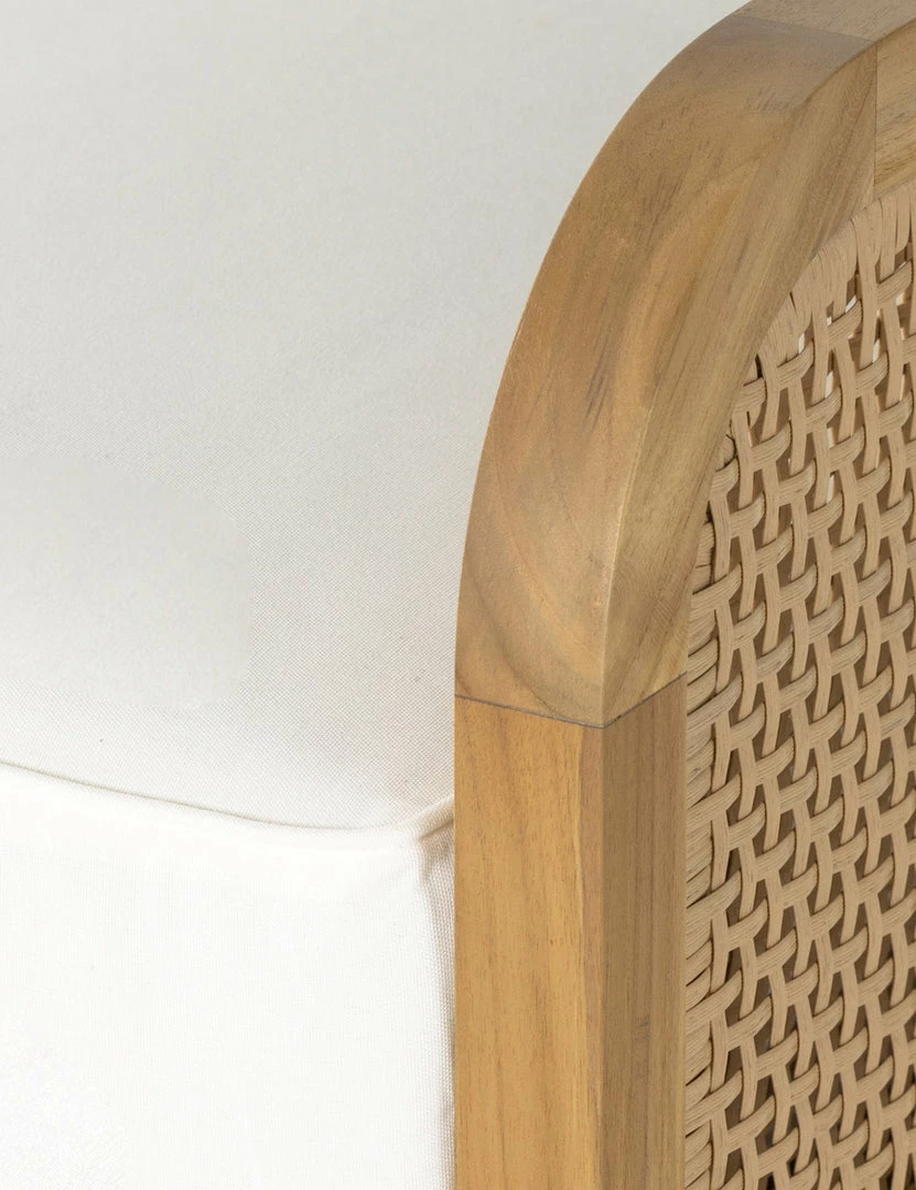 Inspire a space that feels elevated yet timelessly casual with this versatile indoor/outdoor collection. A rounded teak frame with all-weather wicker paneling and performance upholstered cushions offers the Anson sofa a breezy charm. Bring couch seating to your patio or pool house with this laid-back design.