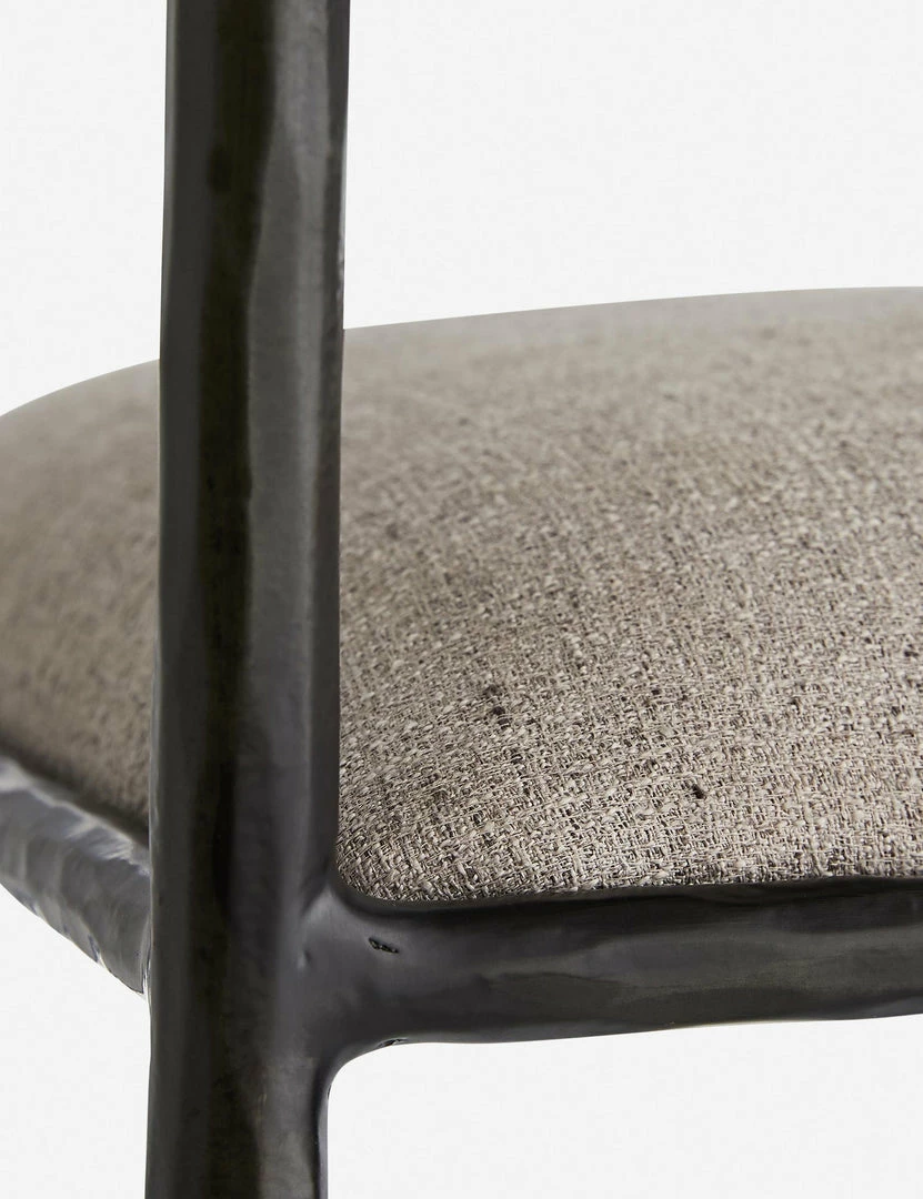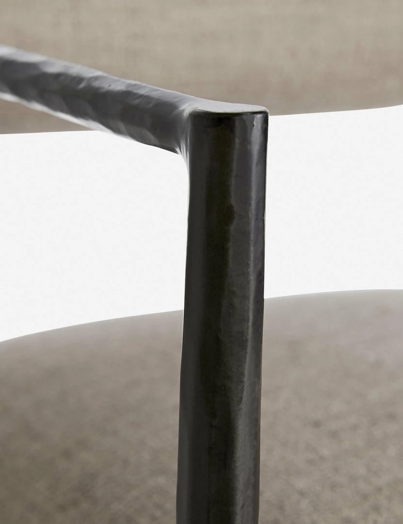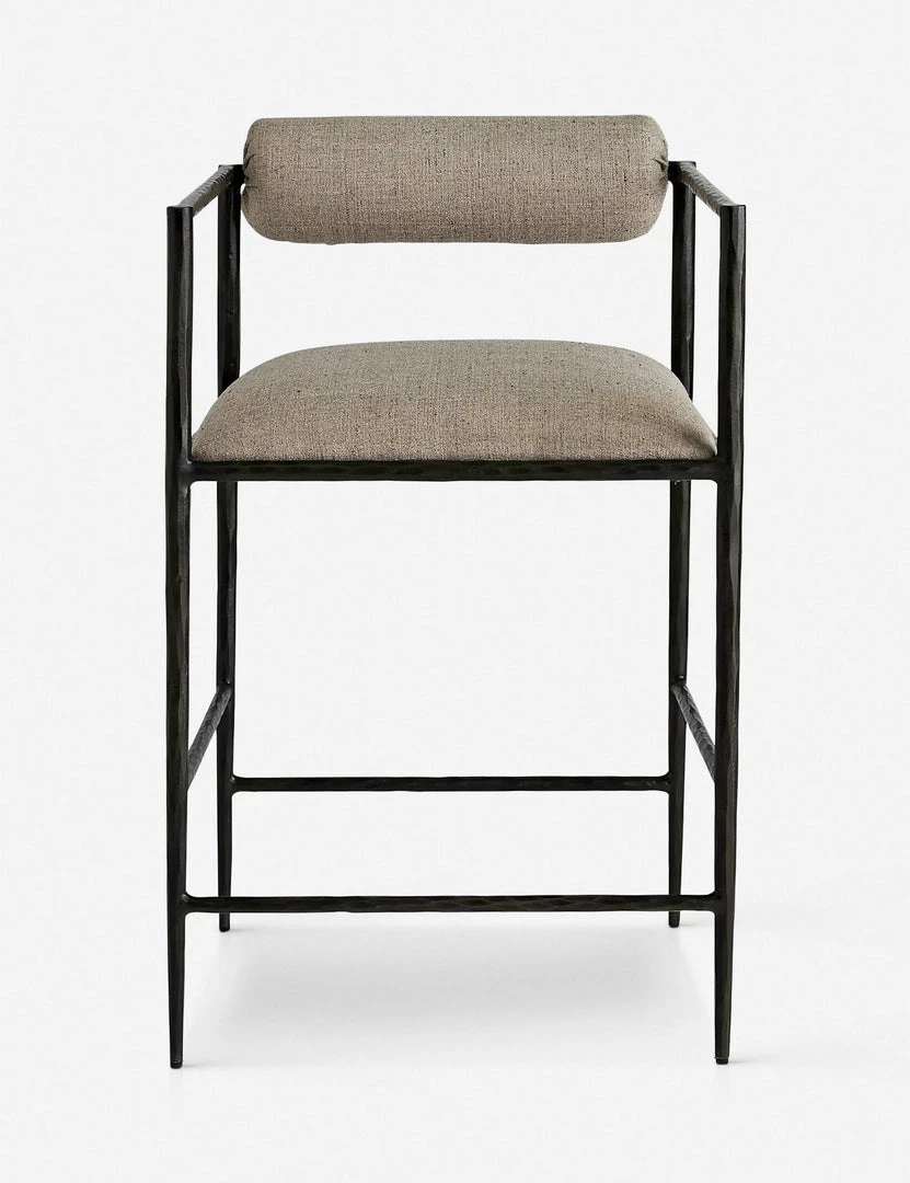 Natural hammered iron brings an industrial look to this simple yet sophisticated counter-height stool. Tapered legs offer an edgier touch, while the upholstered bolster back lends a more elegant air.
