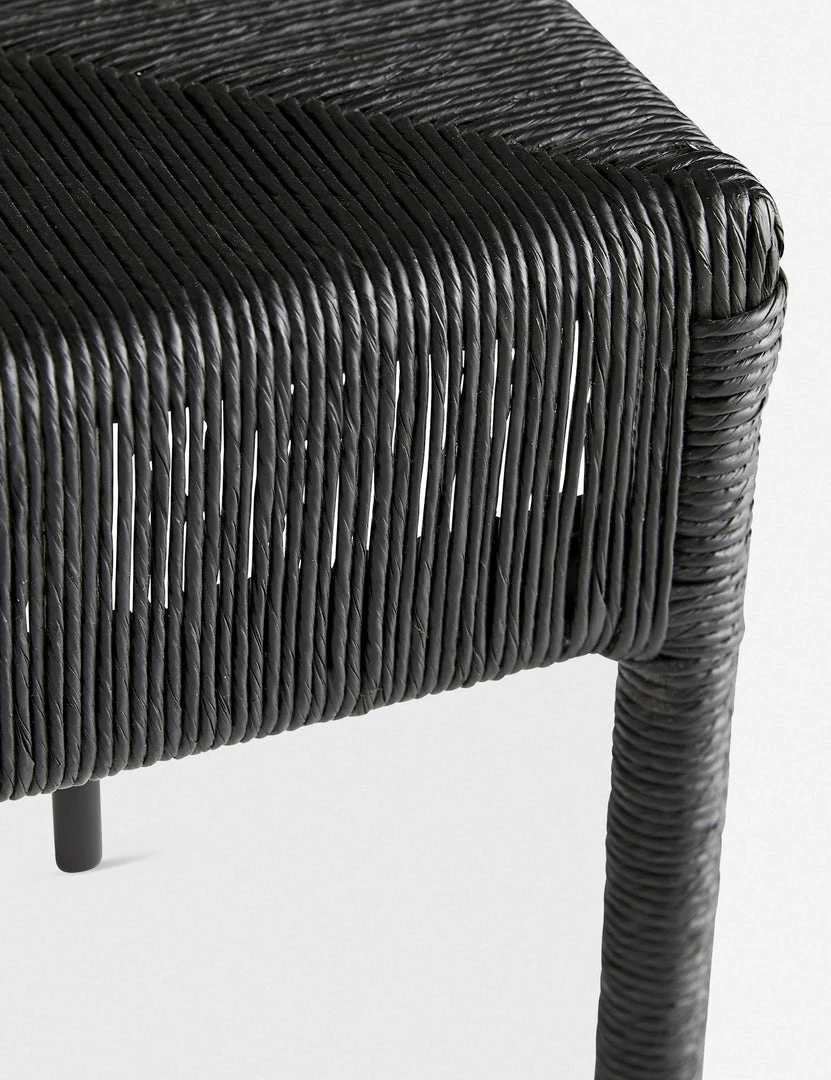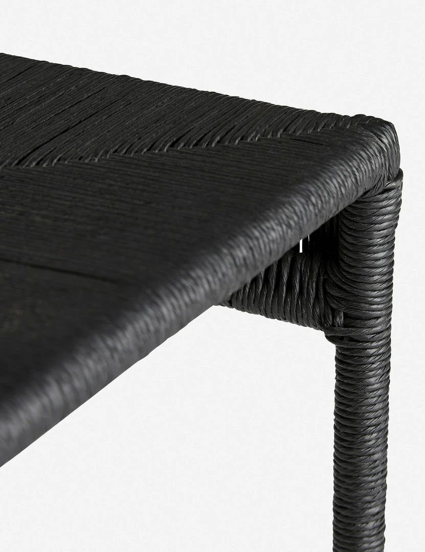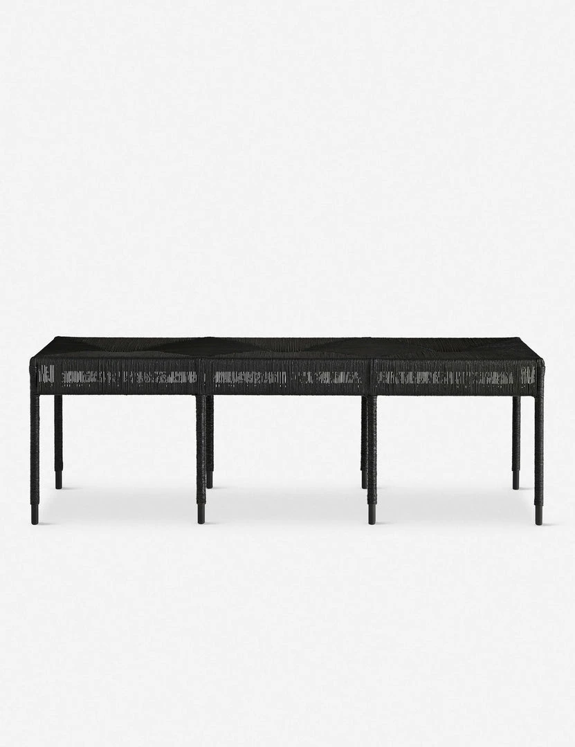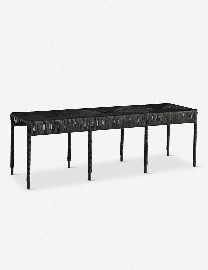 This long Danish cord-wrapped bench is the perfect seating piece for entryways, living rooms, and even transitional bedrooms. The black finish and natural textures add a grounding element to this transitional bench.