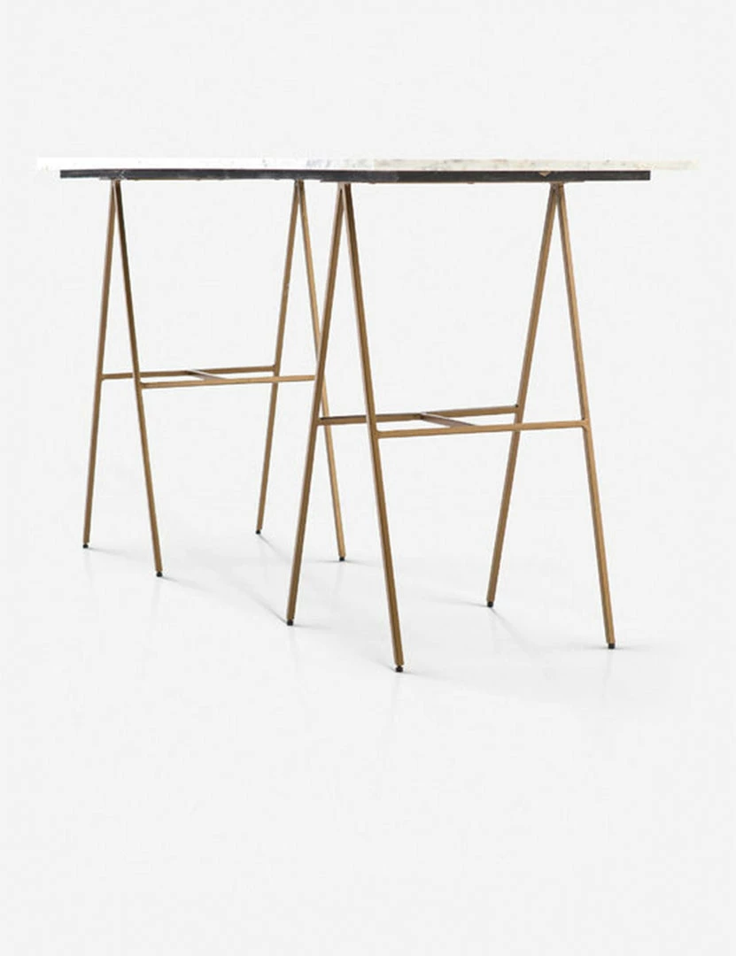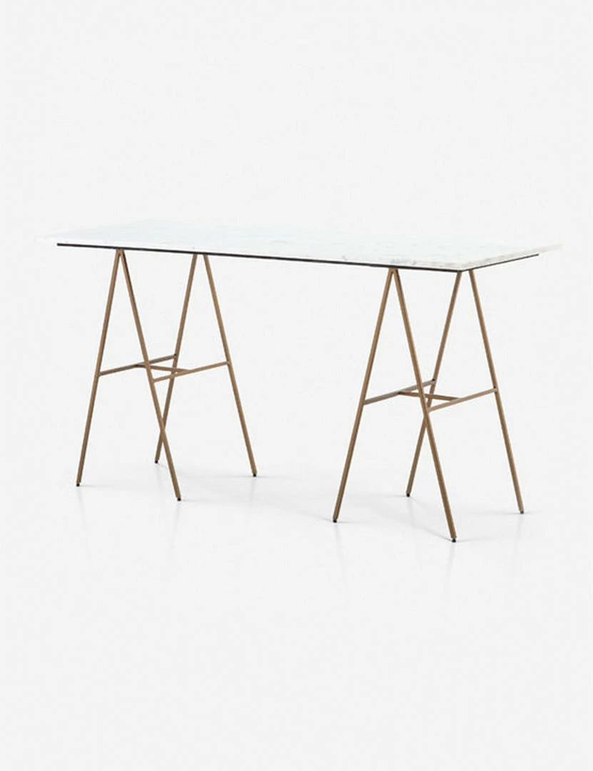 With two slim A-frame legs, this marble desk offers space for work while maintaining an open, airy feel. White marble provides on-trend elegance, while the brass adds a sense of boldness.