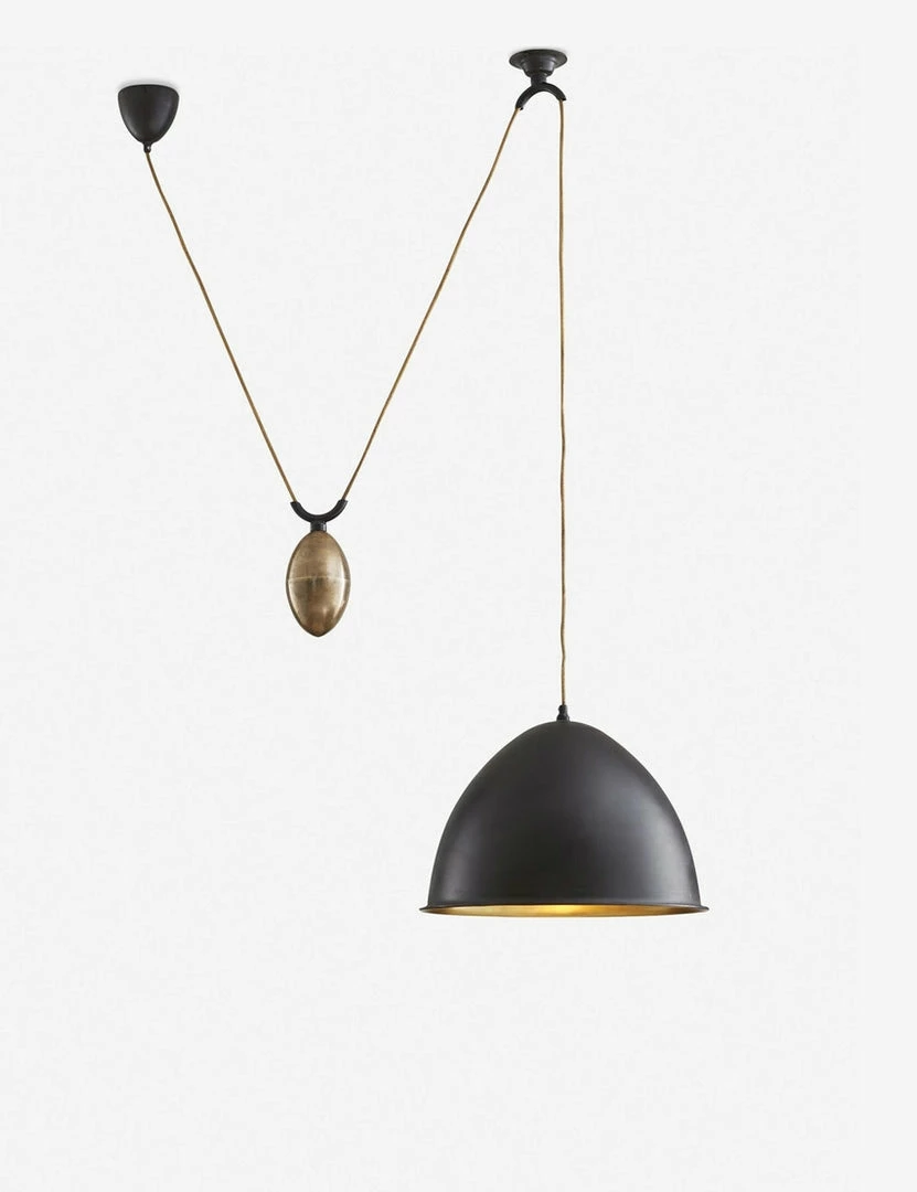 An incredibly versatile pendant lamp from designer Barry Dixon, the classic black dome hood is weighted with a whimsical egg drop, allowing for adjustable height in any space.