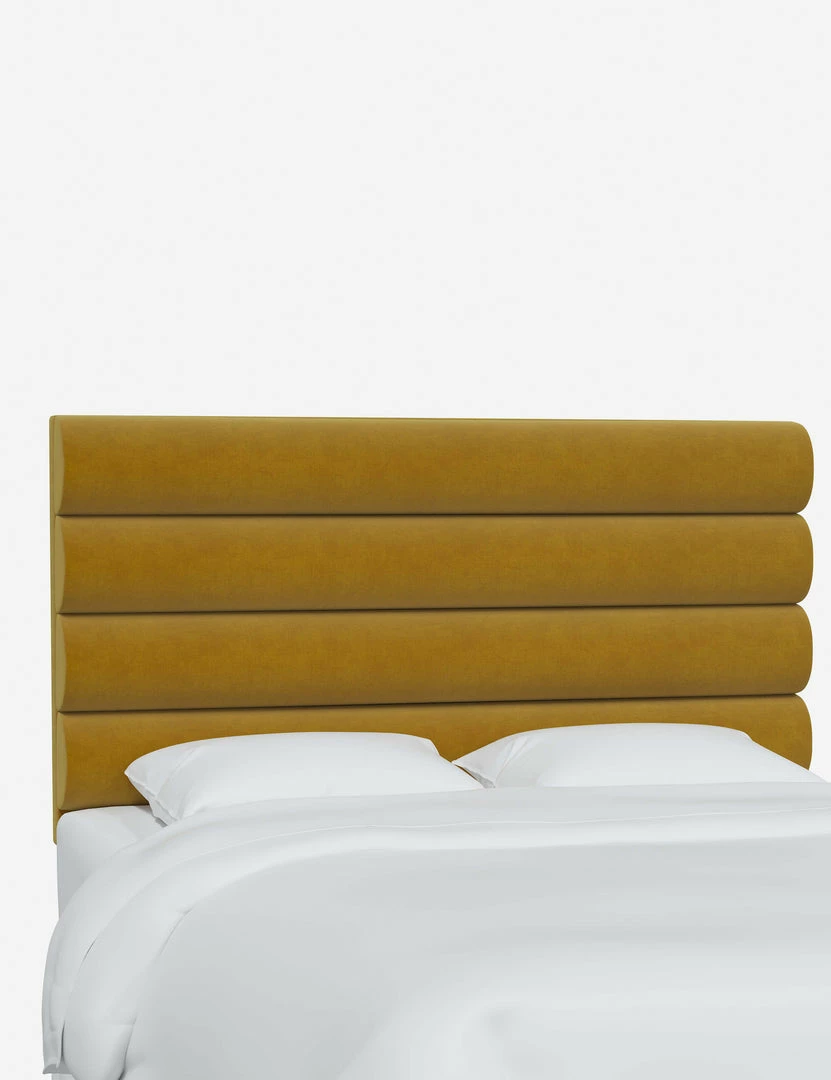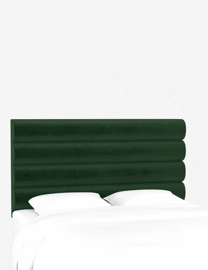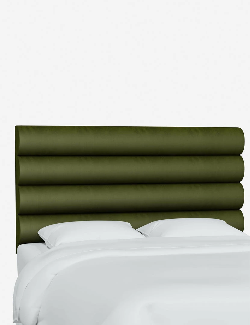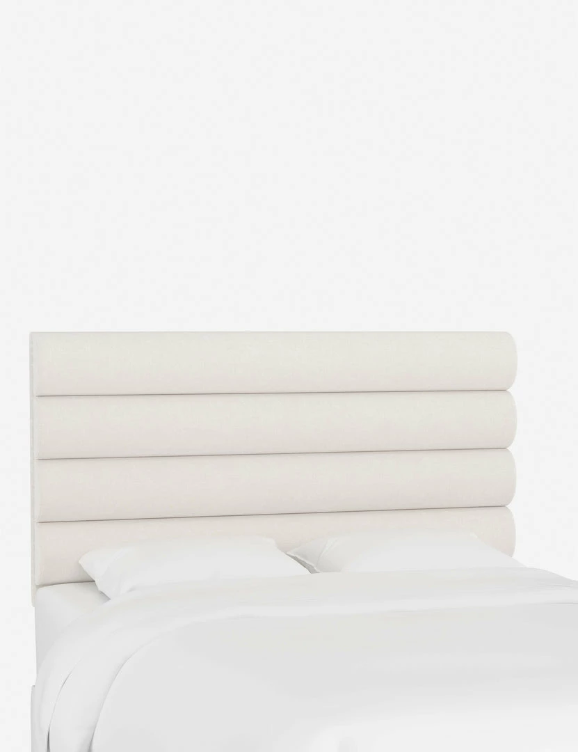 Plush sophistication abounds in this channel-tufted headboard. This trim design provides a grounding balance to any bedroom look with its crisp horizontal lines. In a variety of colors and fabrics, this headboard attaches to any standard bed frame for a fresh bedroom look.