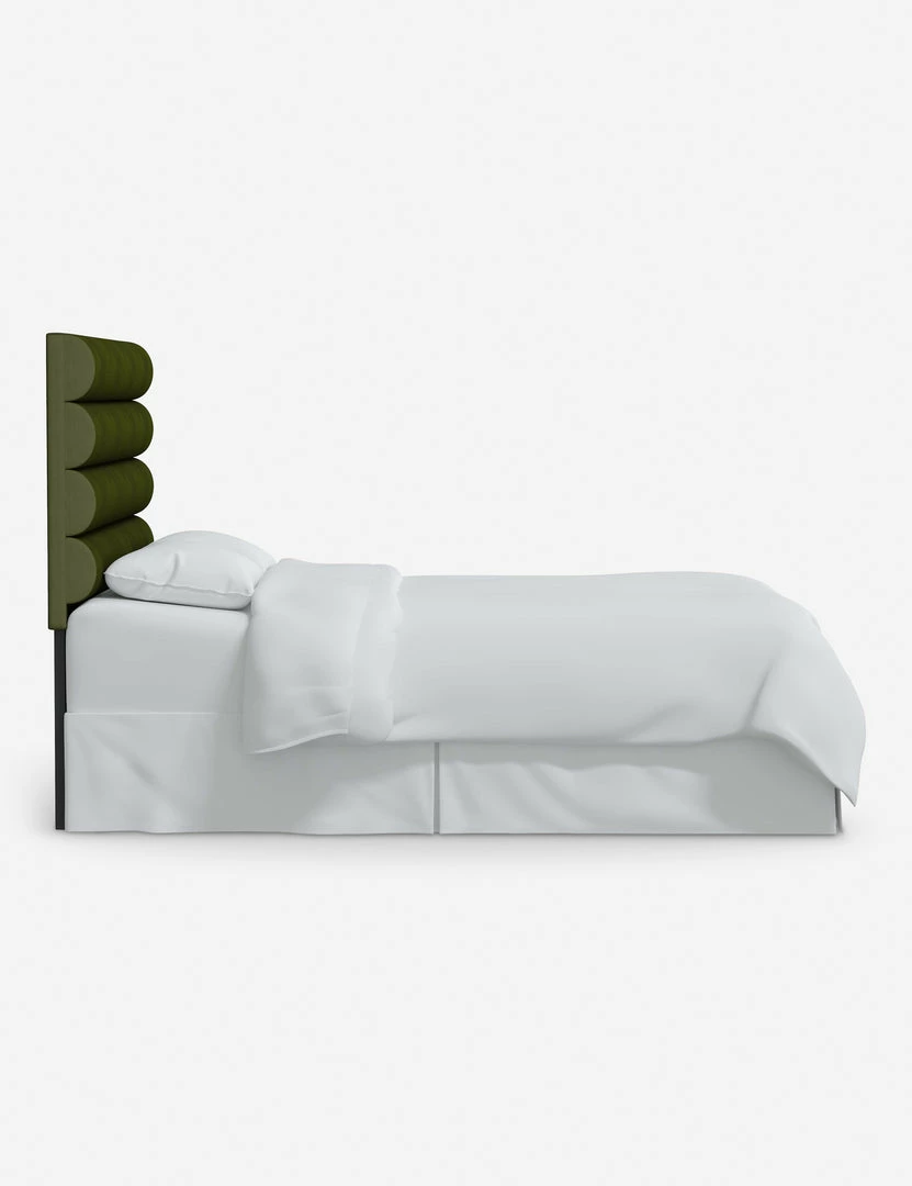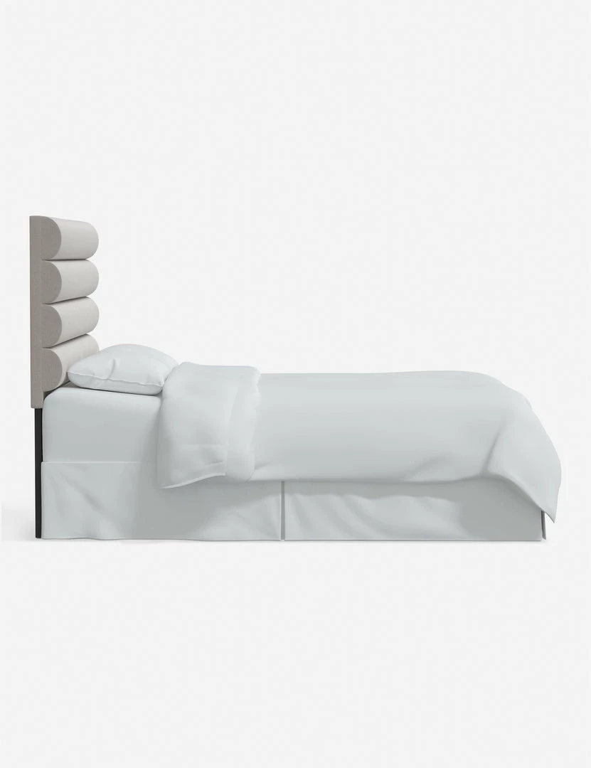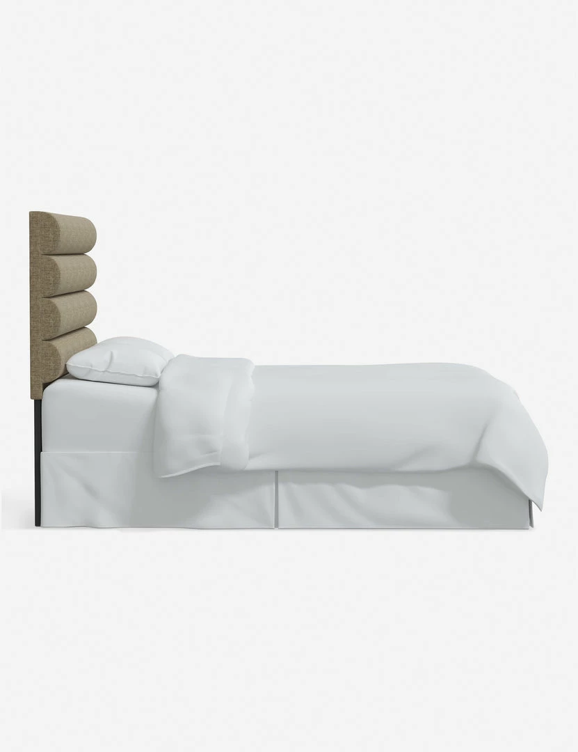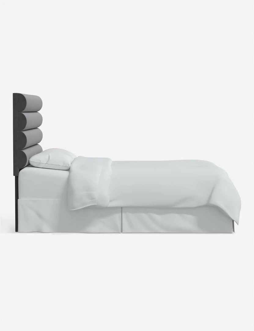 Plush sophistication abounds in this channel-tufted headboard. This trim design provides a grounding balance to any bedroom look with its crisp horizontal lines. In a variety of colors and fabrics, this headboard attaches to any standard bed frame for a fresh bedroom look.