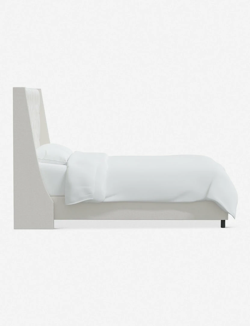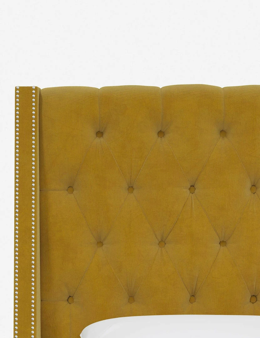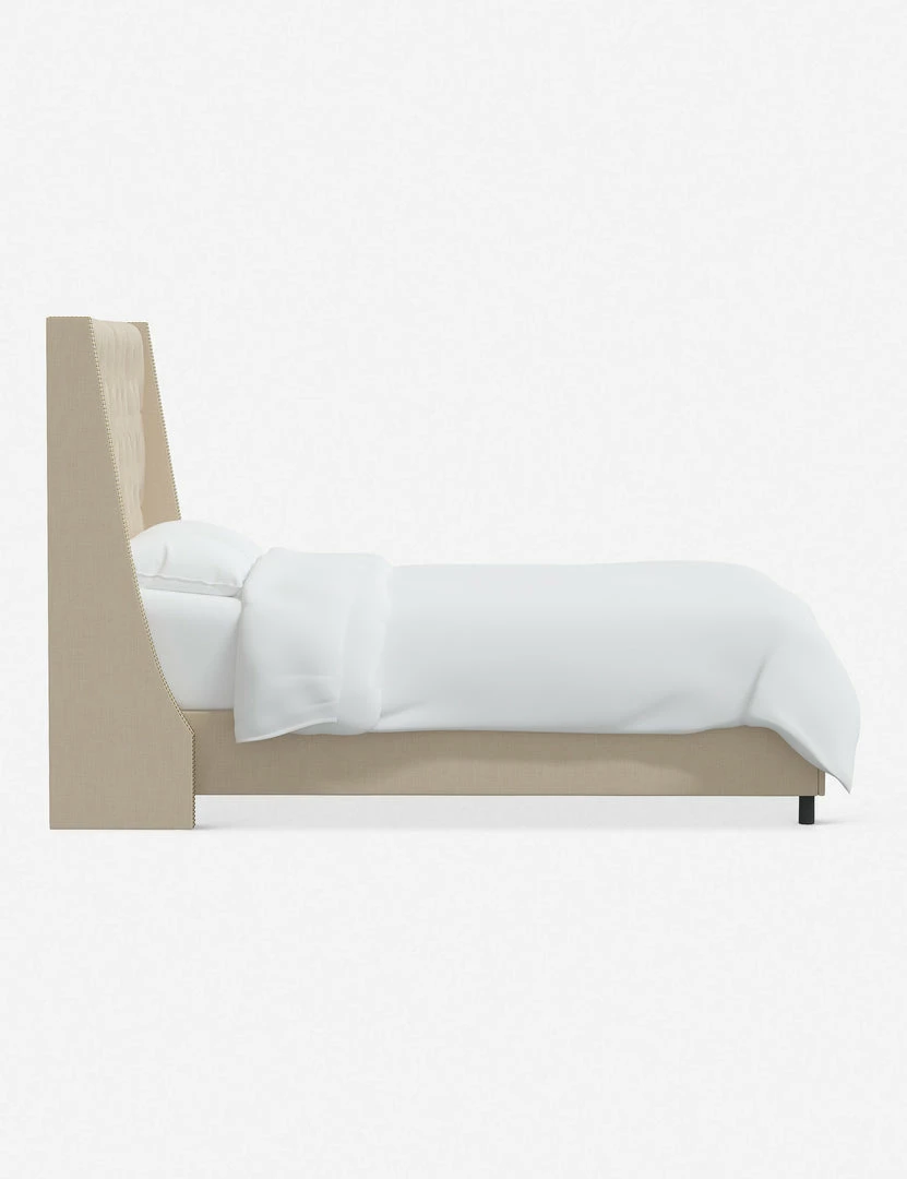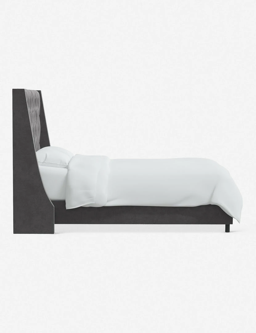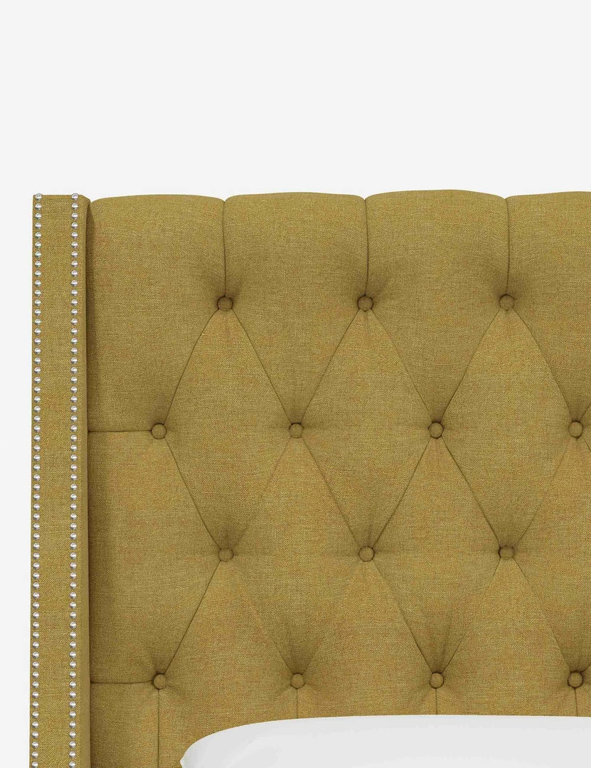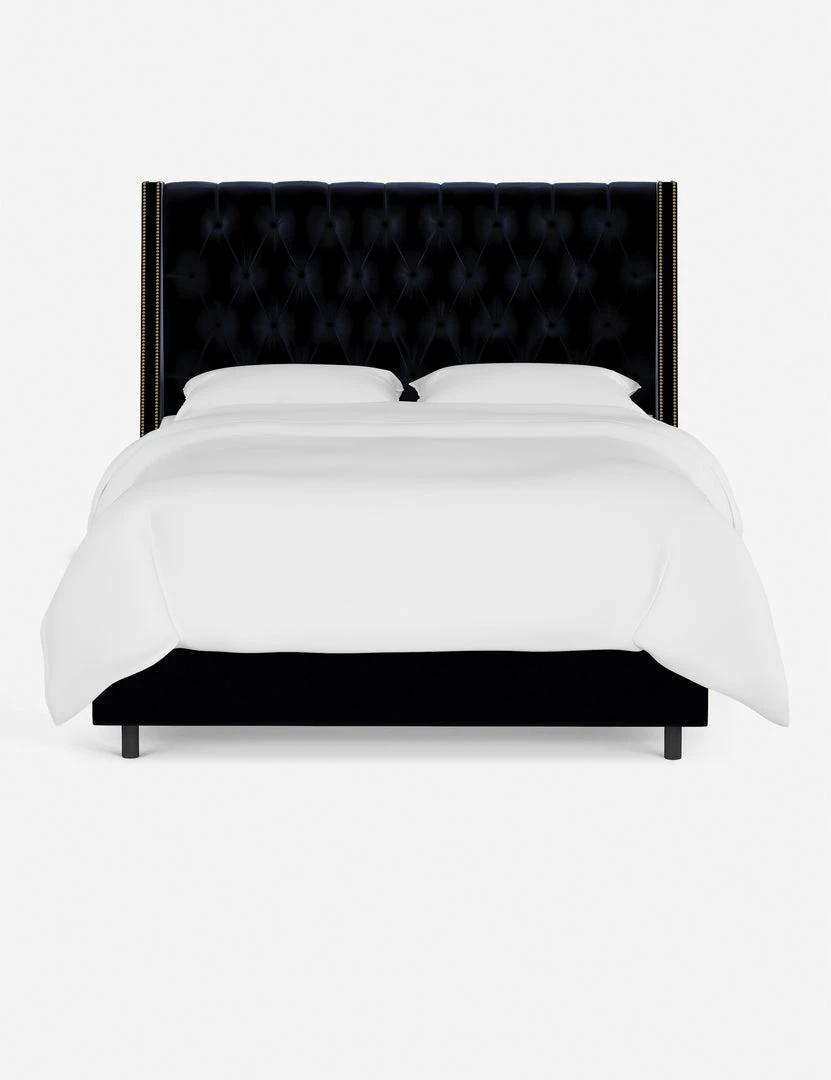 Traditional style is given a modern treatment in this bed with its tufted headboard, subtly winged with orderly rows of upholstery tacks. With a design set for a luxe night’s rest or morning cup of tea, this bed frame can suit a vintage-inspired aesthetic or bring a touch of chic visual texture to a tailored space.
