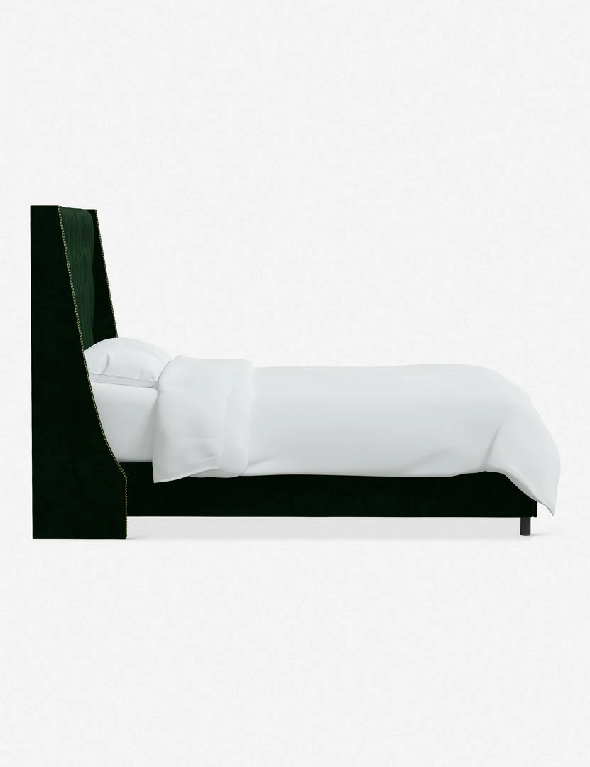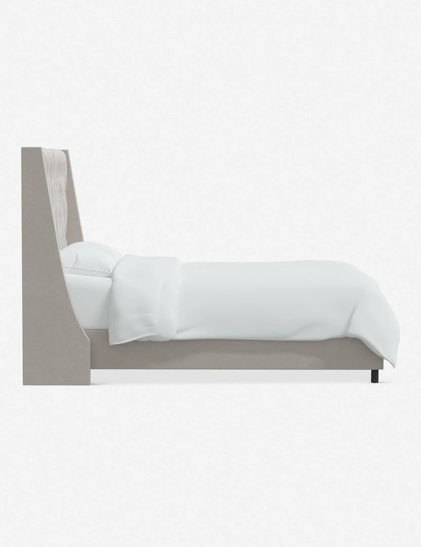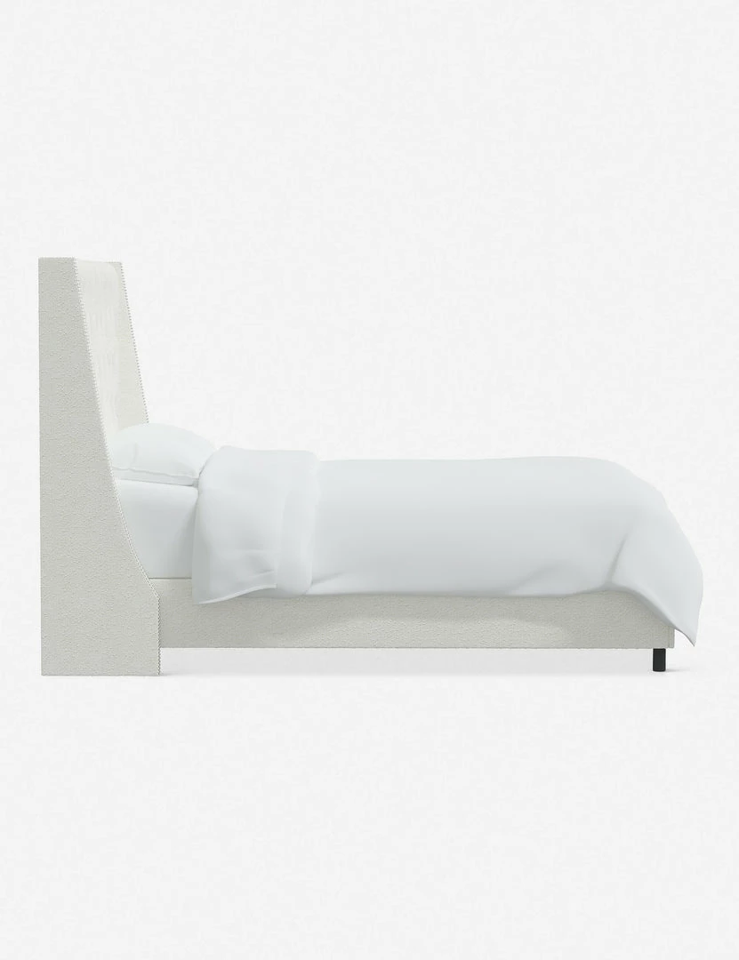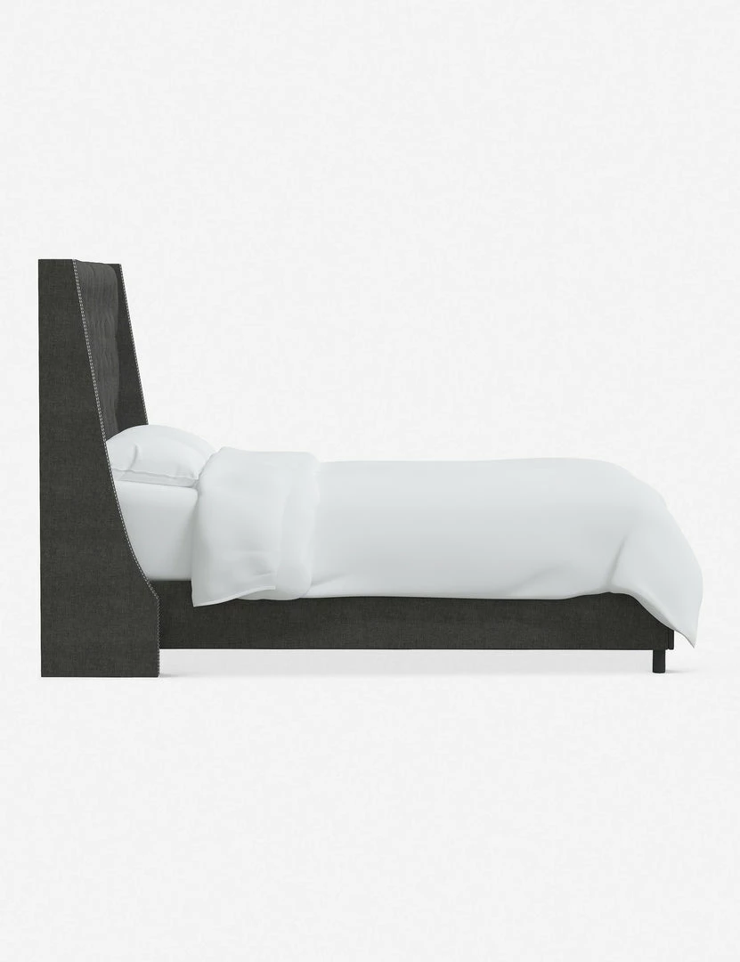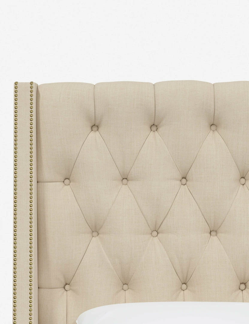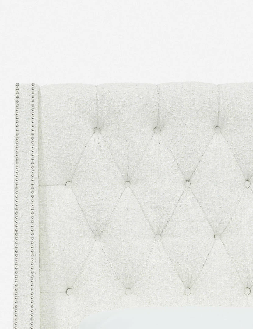 Traditional style is given a modern treatment in this bed with its tufted headboard, subtly winged with orderly rows of upholstery tacks. With a design set for a luxe night’s rest or morning cup of tea, this bed frame can suit a vintage-inspired aesthetic or bring a touch of chic visual texture to a tailored space.