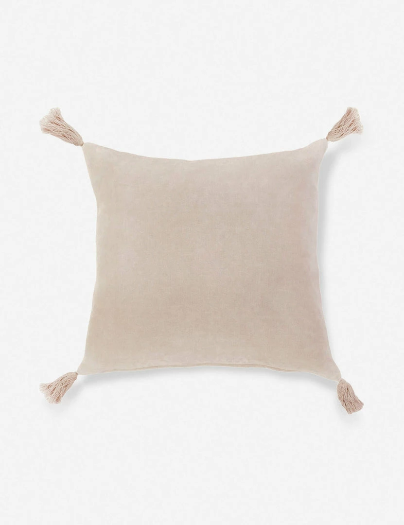This soft velvet pillow adds a lush feel to any room. Finished with corner tassels for added style.