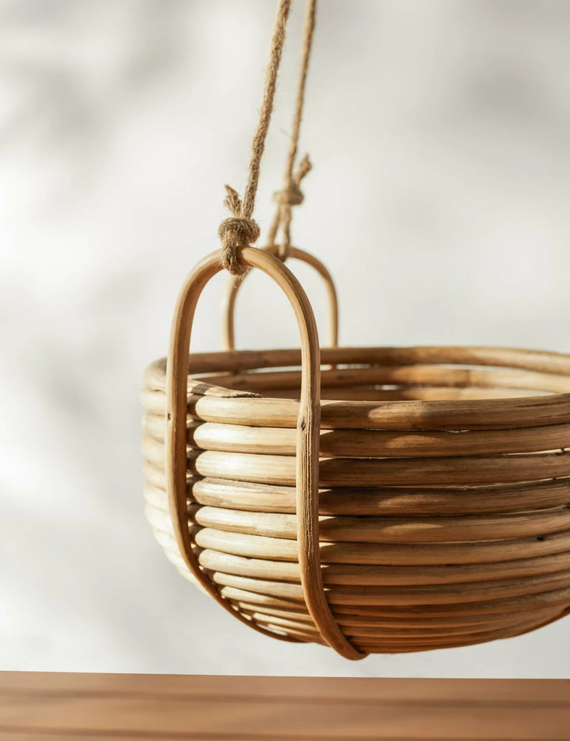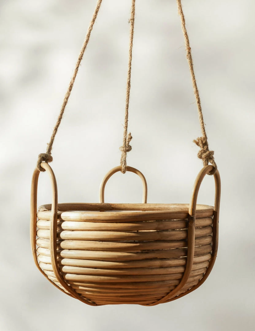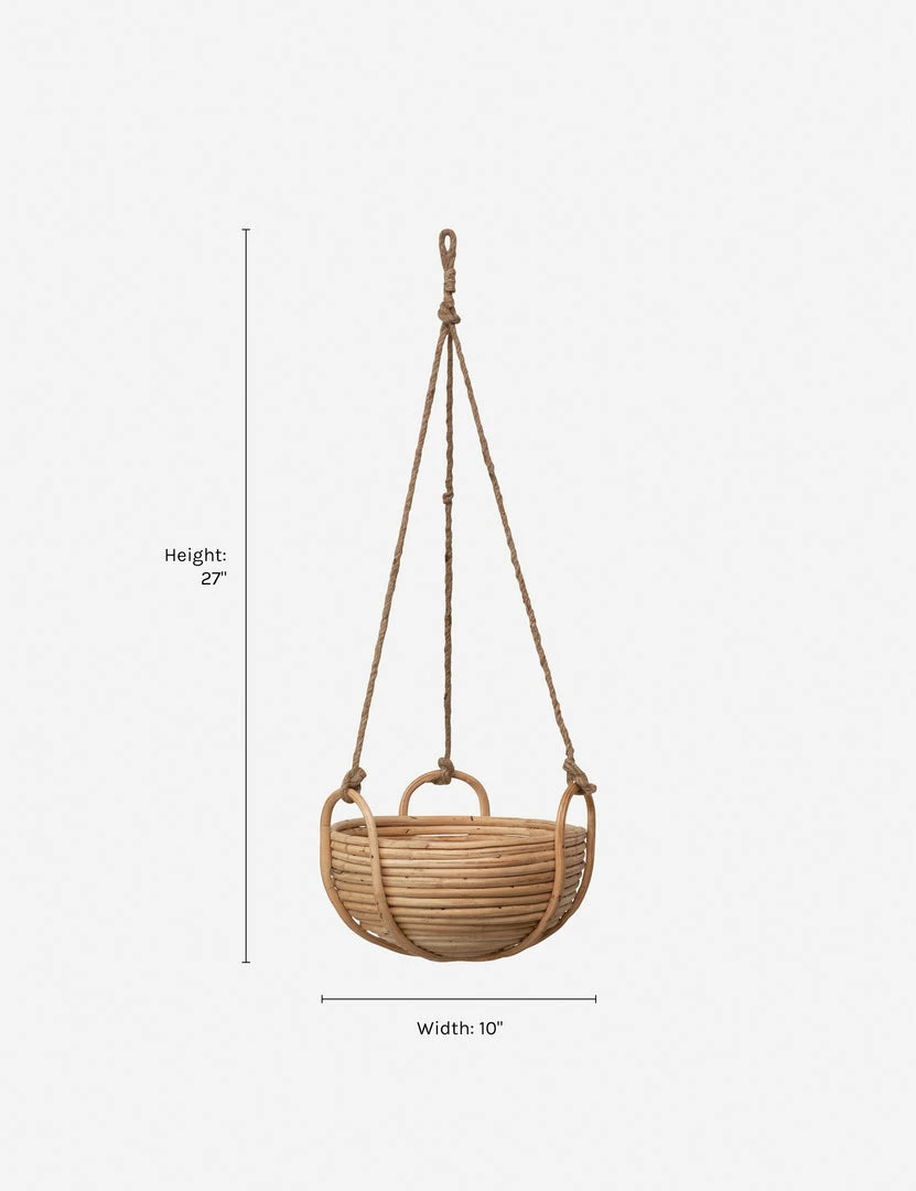 Turn your outdoor or transitional area into a refined oasis with this hanging rattan planter basket. A jute strap suspends the woven rattan holder for an artisanal touch that can fold naturally into a garden terrace or an airy, sunlit room. This hanging planter is perfect for small vine plants like golden pothos or English ivy.