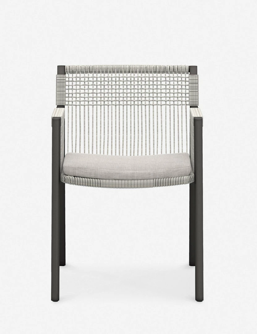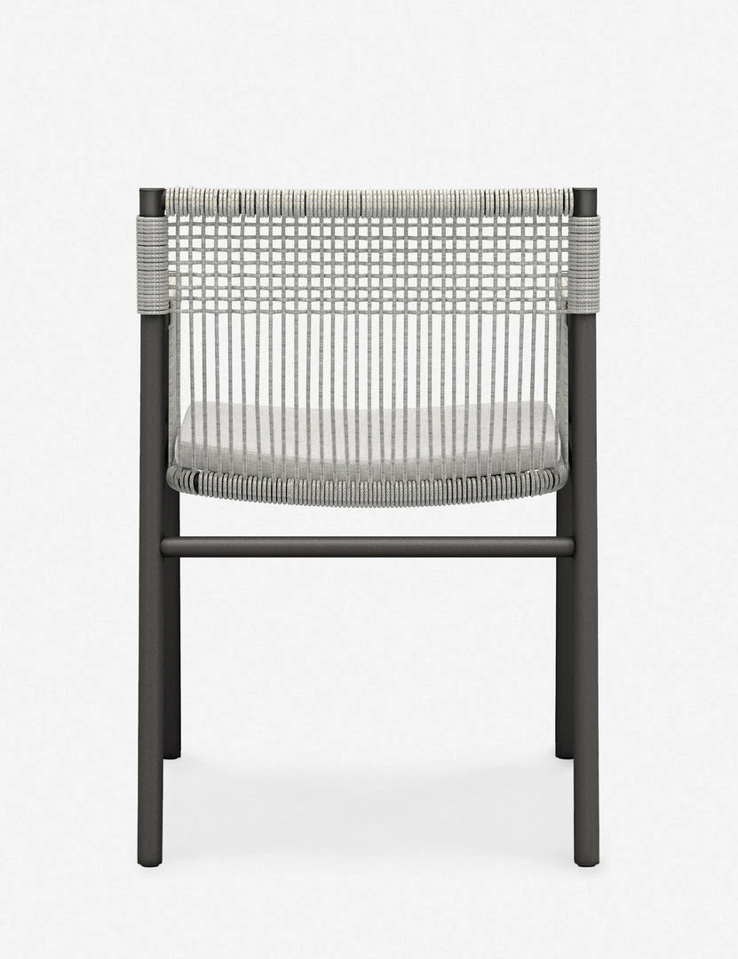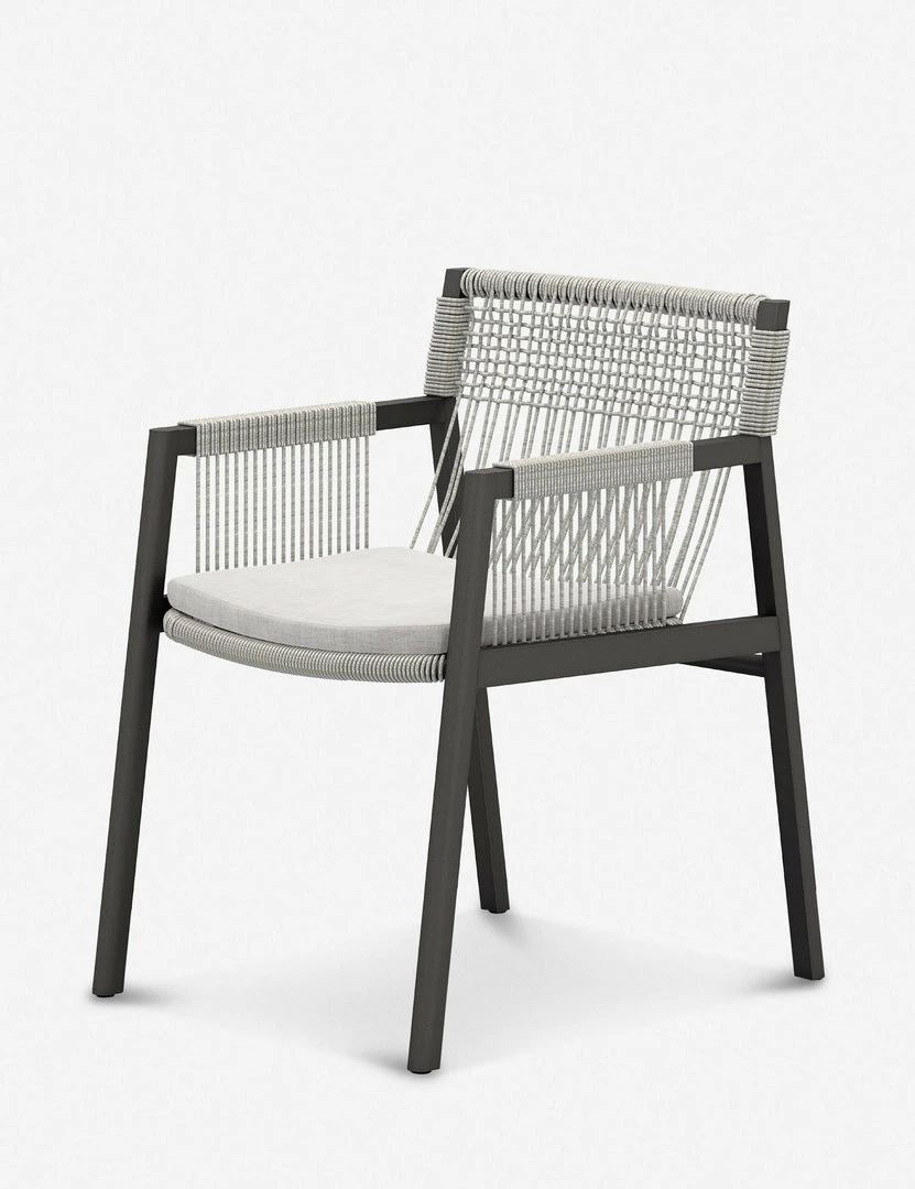 Strike a modern edge with this lightweight accent chair. A woven rope seat creates dramatic lines in its eye-catching profile. With its outdoor-friendly frame and performance upholstered cushion, this occasional chair can offer an elevated tone anywhere from a detached studio to a garden terrace.