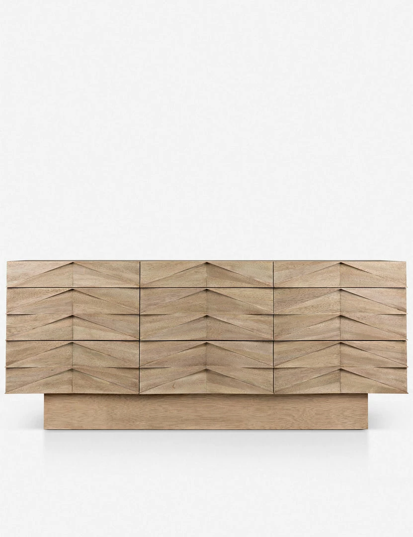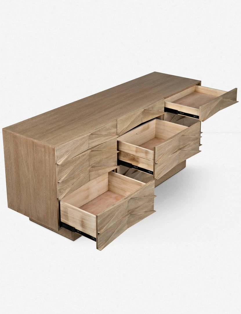 Give your contemporary space a little more dimension with this wooden dresser. Clever beveling results in an abstract chevron pattern on the front, while plenty of drawer space makes for a stylish storage solution for your bedroom.