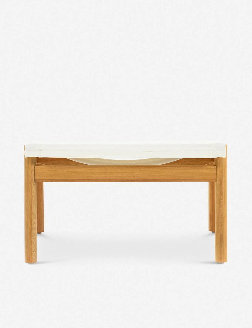 Clean, essential design offers a refined outdoor style in this streamlined ottoman. The eucalyptus frame is highlighted by a warm finish and fitted with a quick-drying mesh top. Style with the Charise collection for a tailored poolside look, or fold this versatile accent into any sunlit aesthetic.