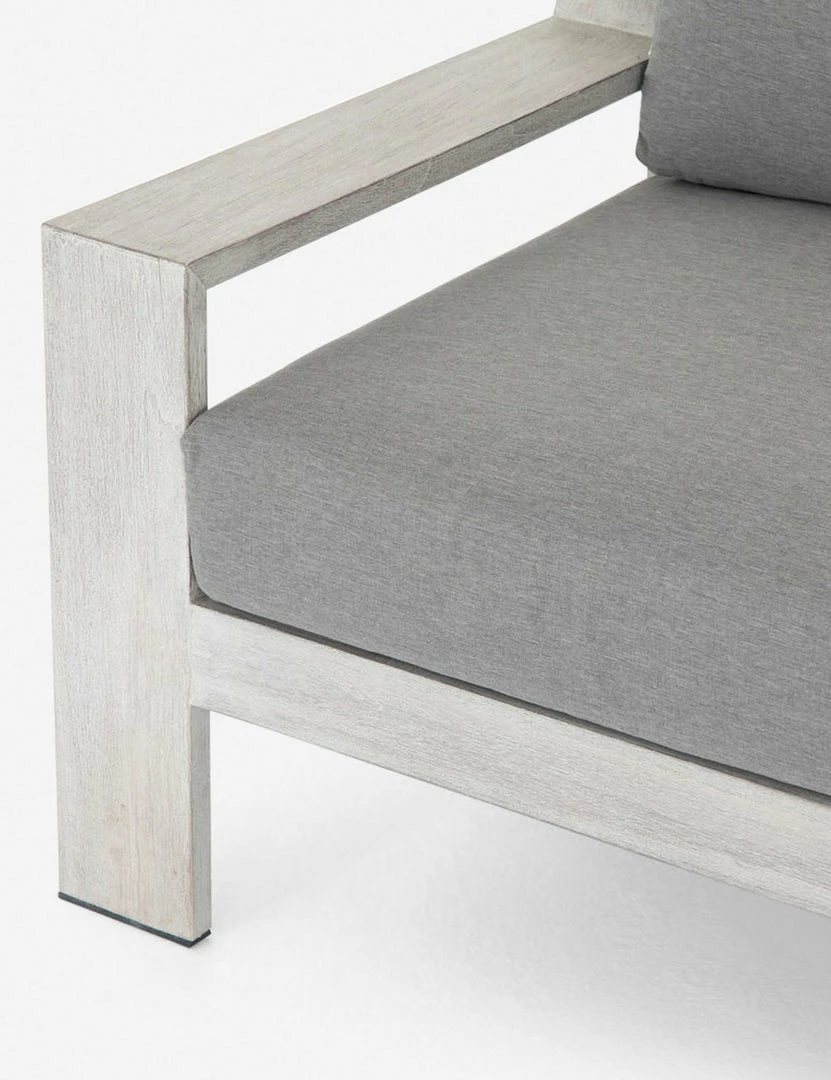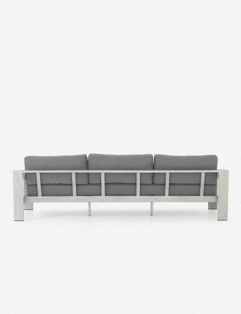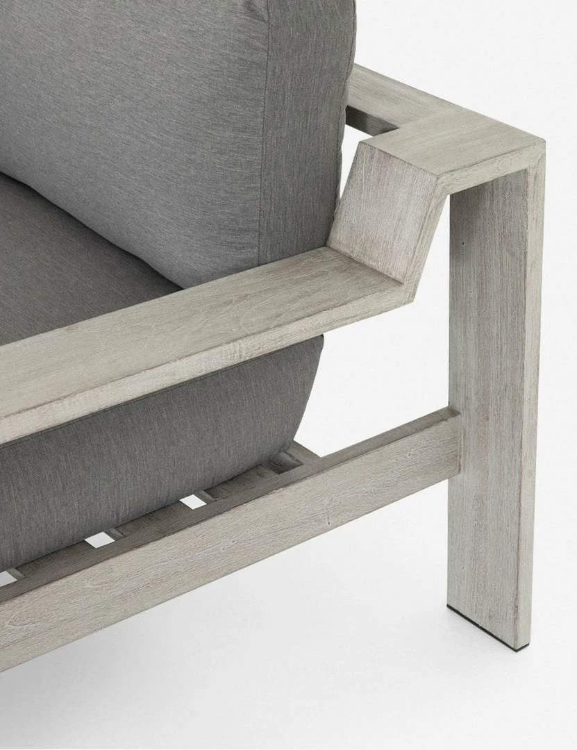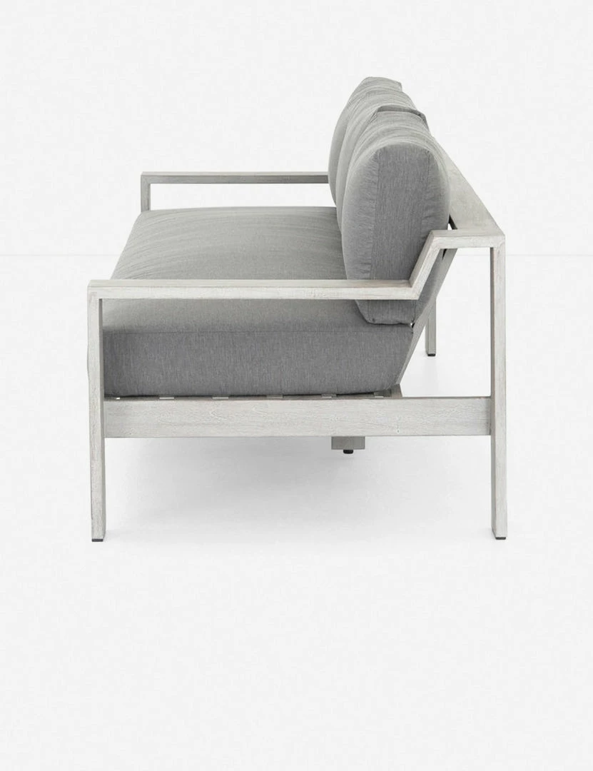 A contemporary essential for any patio or backyard gathering space, the Clarise Sofa features a wooden frame with clean lines, sleek angles and a broad design.