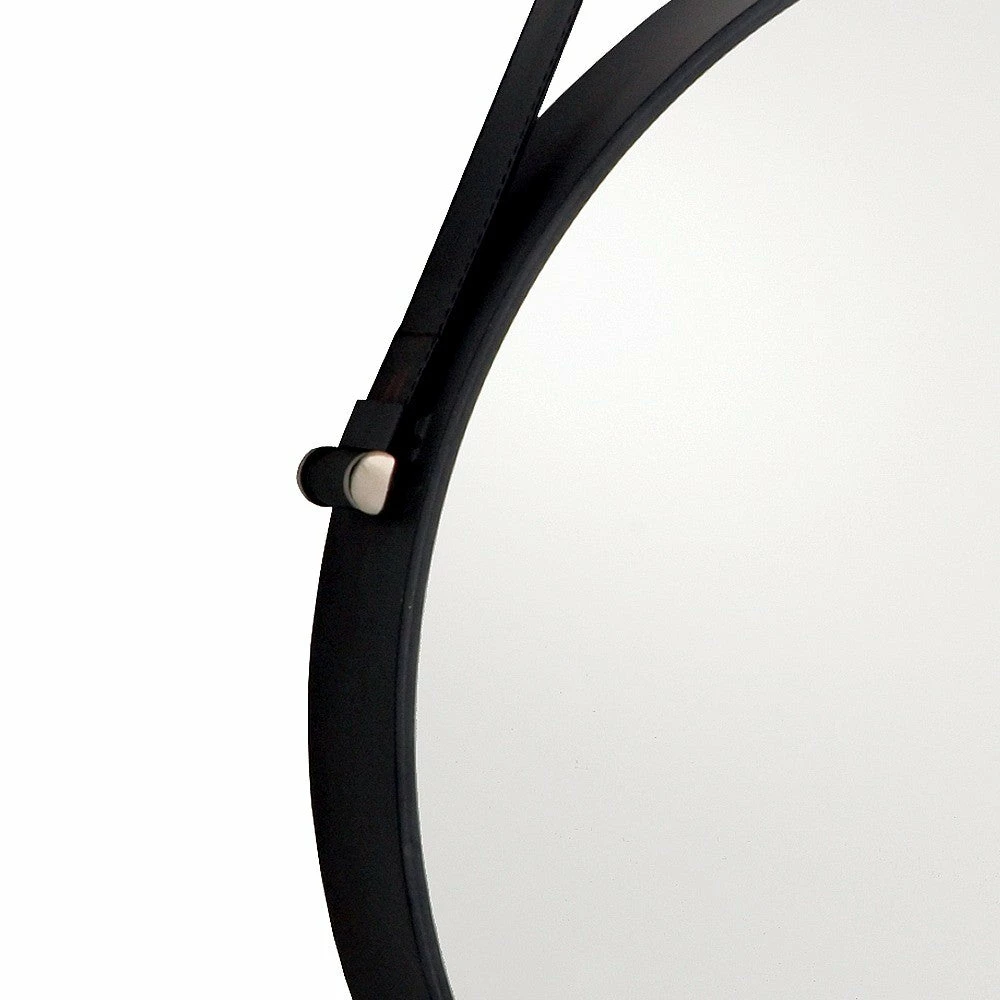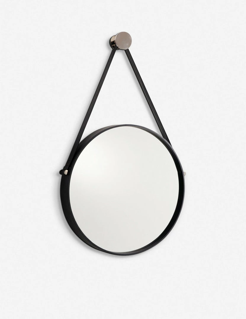 A sleek metal frame and angled hanging details give this round mirror a more modern look. Perfect for bedrooms, bathrooms and hallways.