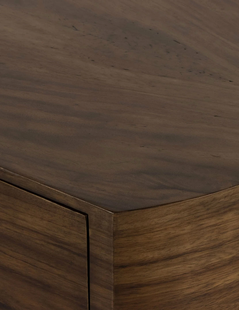 The dramatic curves, natural wood graining, and generous size of this executive desk redefine the look of your home office. Sculpted from Guanacaste wood, push-latch side cabinets and drawer offer spacious storage. A fully-finished front and curved back allow you to float this desk within a room for a dramatic layout.