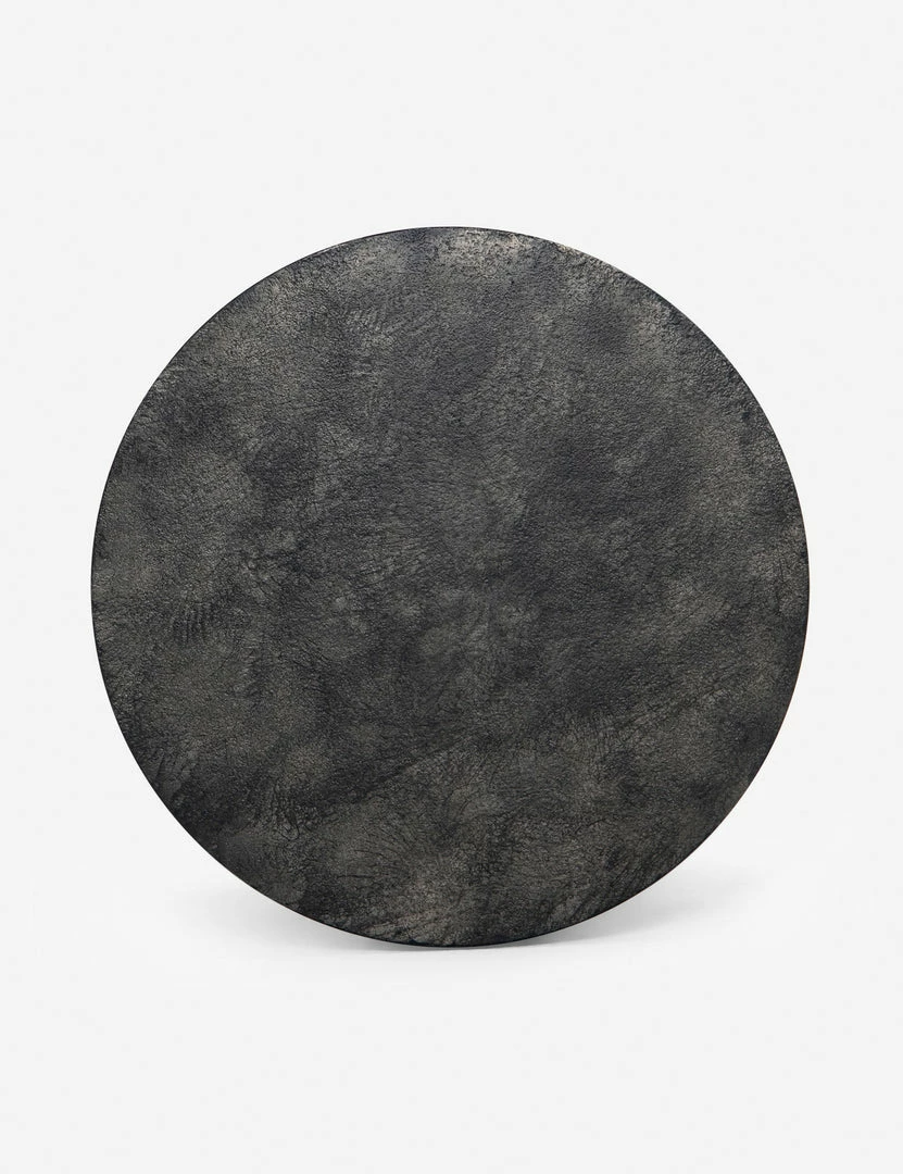 A clean, geometric silhouette gives this end table a sculptural tone with crisp visual impact. Made from raw black-finished iron, each table displays a refined, industrial texture. Pair two as side tables for a stunning symmetrical statement in a moody space.