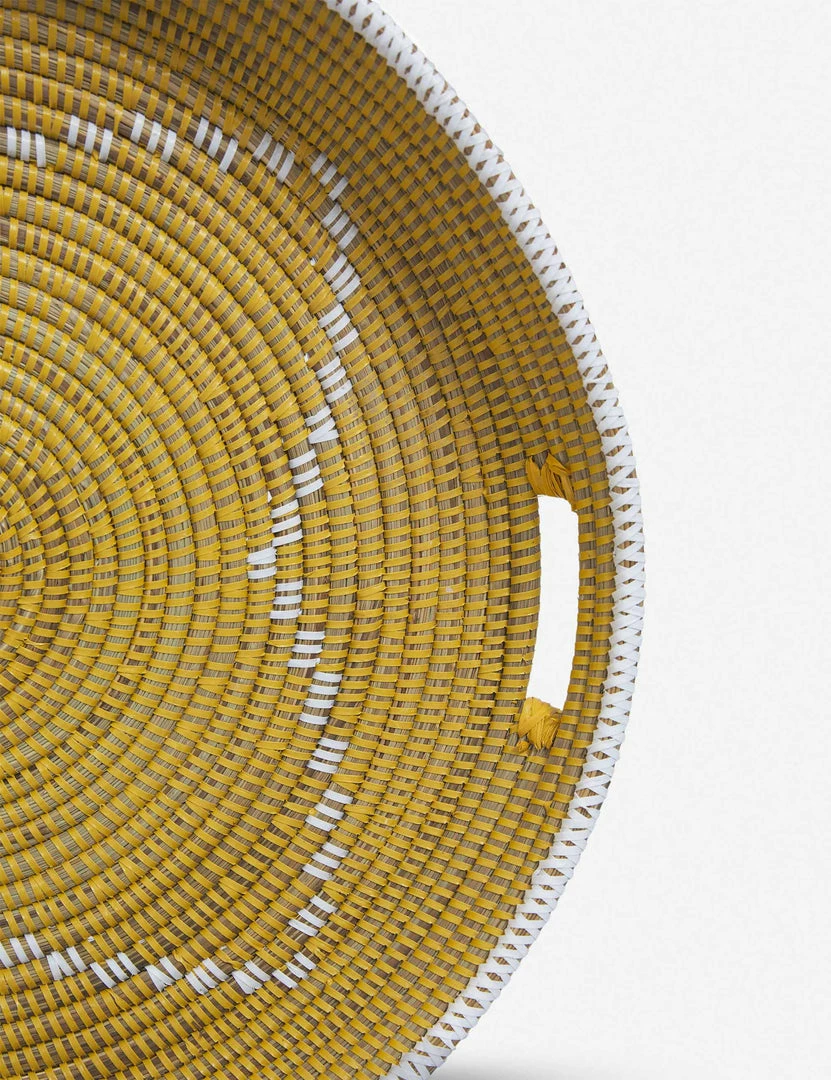 Expertly woven from elephant grass and recycled plastic by Senegalese artists, this tray offers a texturally rich, functional element for your decor. Hang this piece on your wall for an artisanal installation or style on a console or coffee table as a vibrant catchall. Each platter is handmade and features slight variations in color.