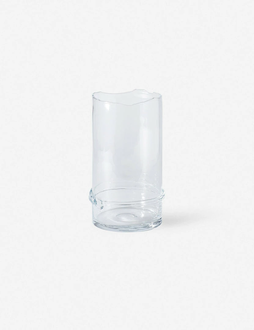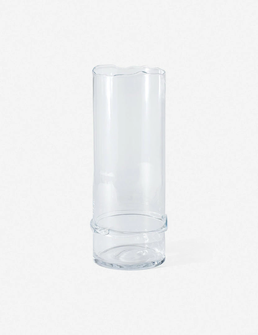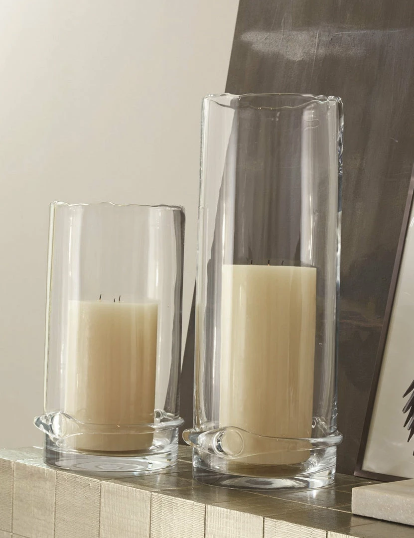 Polish artisanry imbues this eye-catching crystalline hurricane with a timeless, handcrafted quality. The unique design features an organic rim and glass ribbon across the base. Mix and match to house a stunning assortment of pillar candles on your mantel or coffee table.