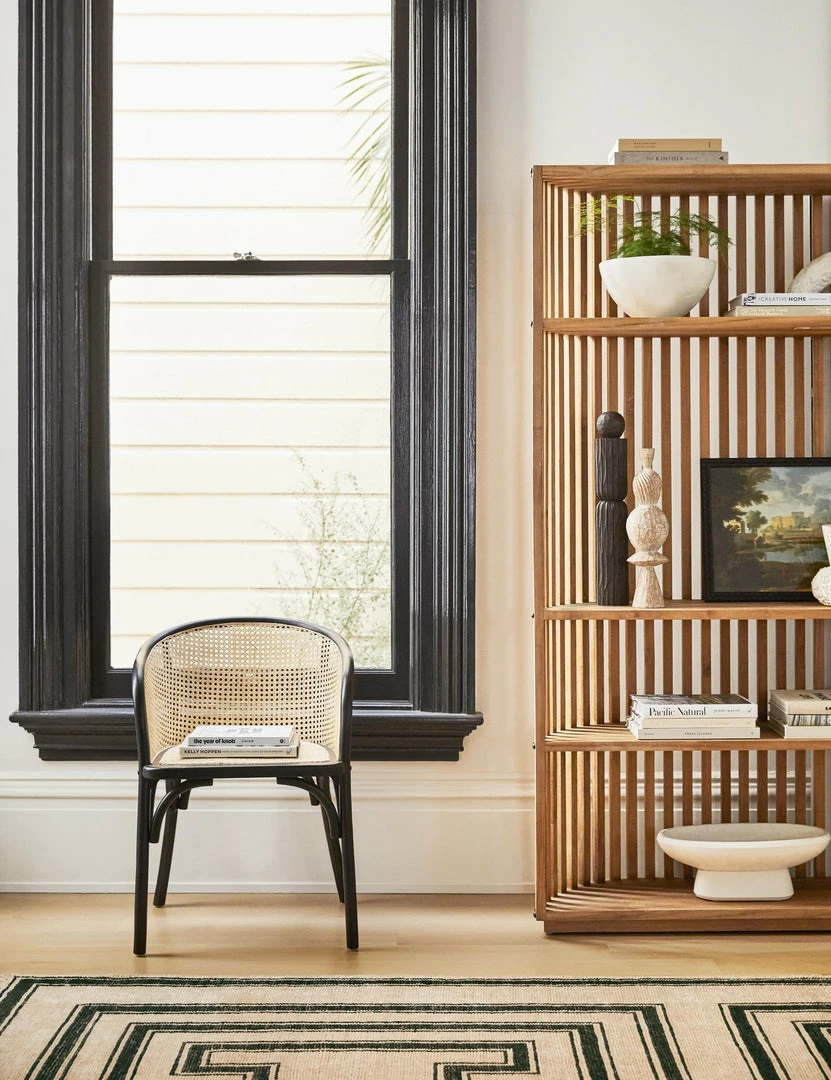 Using traditional elements, this chair retains a modern look with a caned back and clean, sloping lines. Style around your dining table for a more relaxed look, or use as an accent chair in your living space.