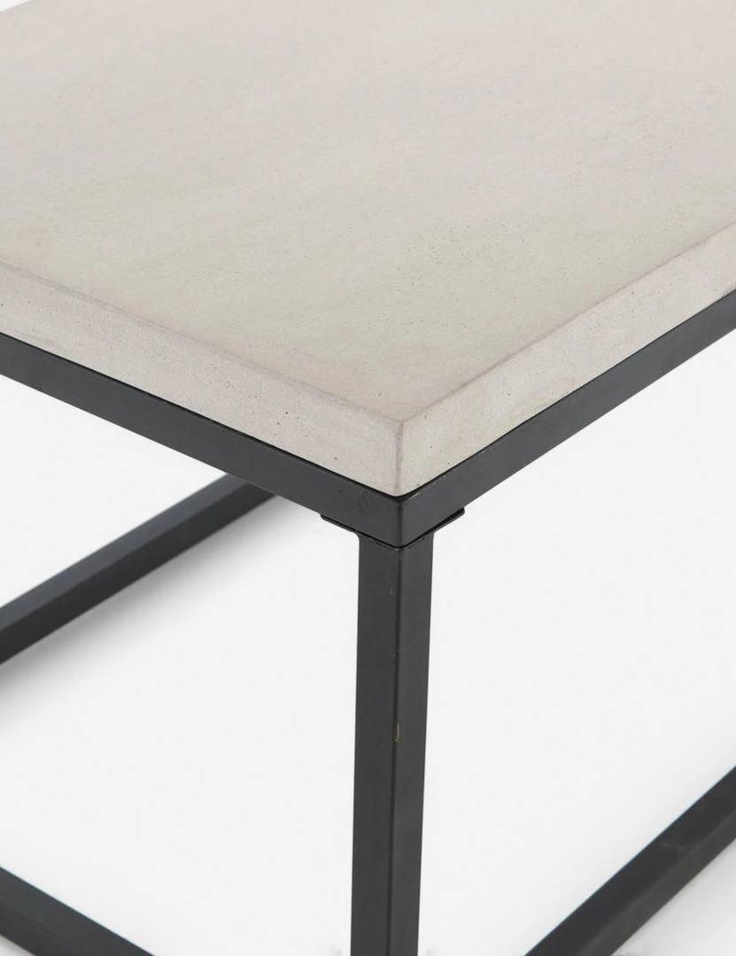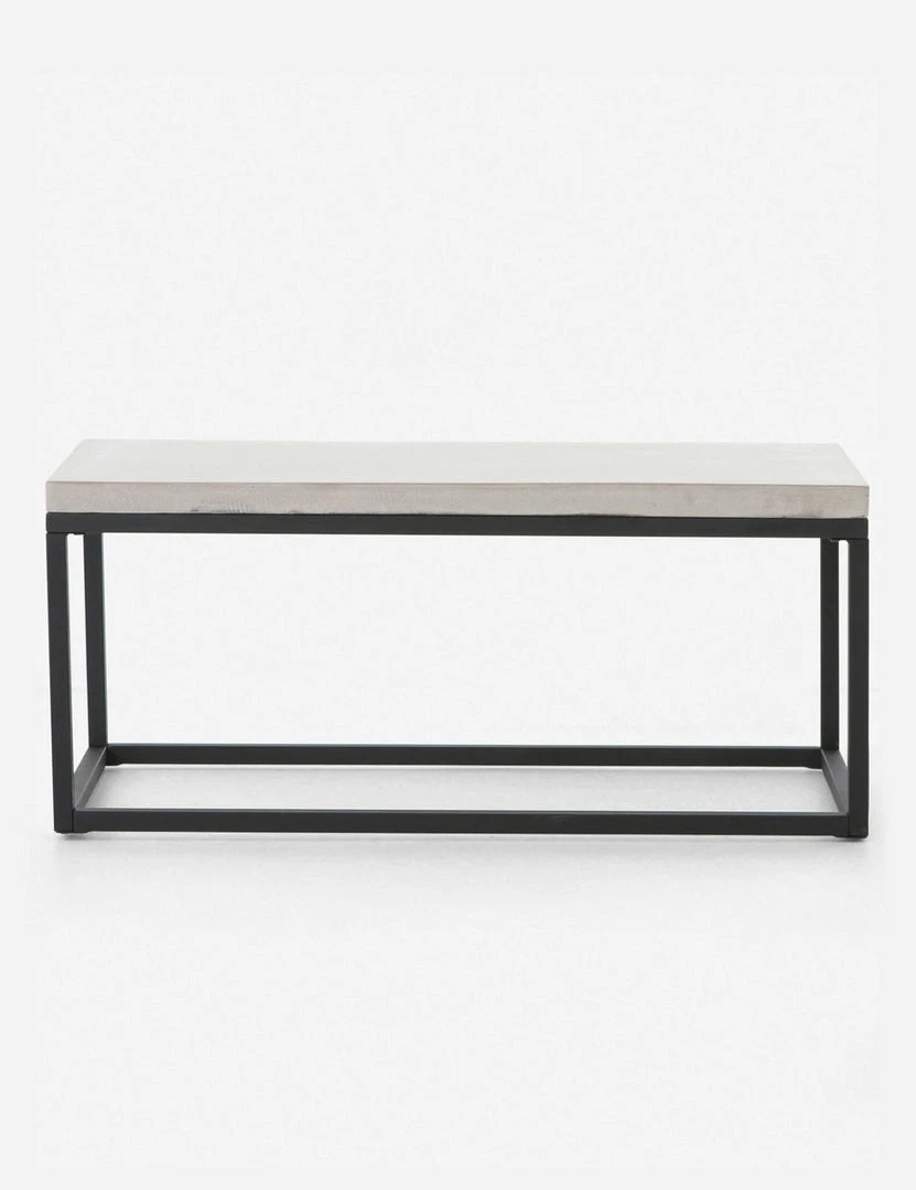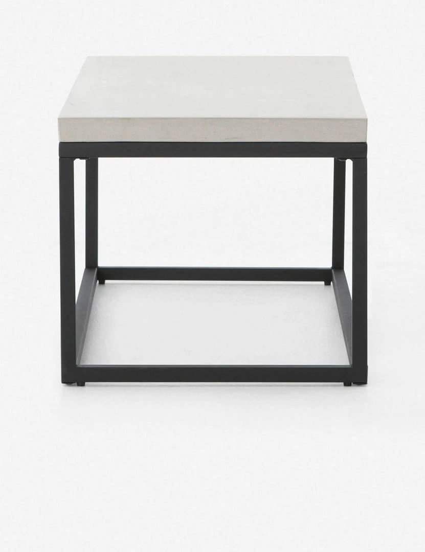 For classic modern style indoors or out, add this rectangular coffee table to the mix, featuring a concrete slab top and black iron base.