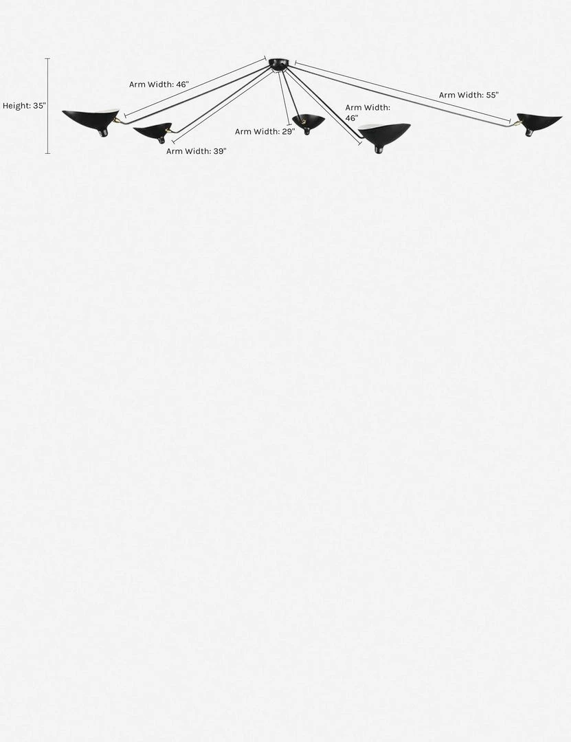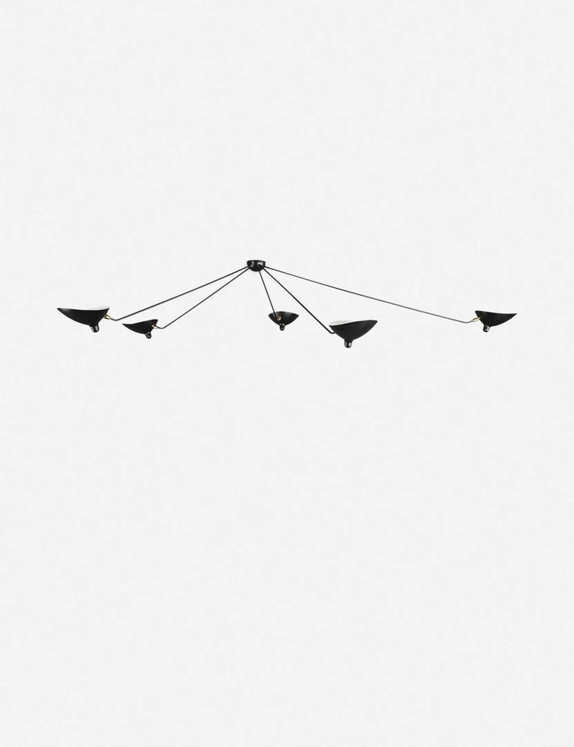 A six-light ceiling lamp that’s everything your modern dreams are made of. The black steel finish and upward-facing scoop-shaped shades diffuse light across your space for a softer look.