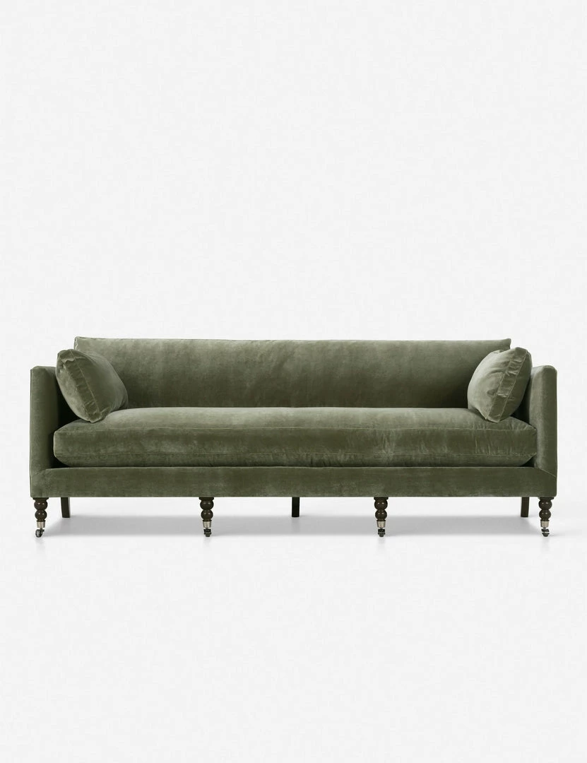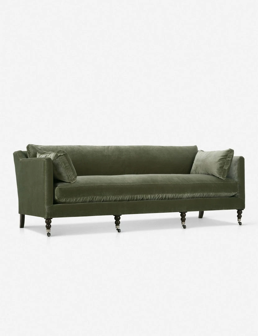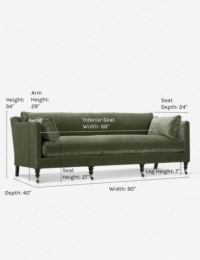 Add a touch of vintage flair to your living room or office with the Fabienne statement sofa. Antique, muted velvet meets traditional curved legs in the back and ornate shaped legs in the front of this plush couch. Finished with small front wheels to ease movement.