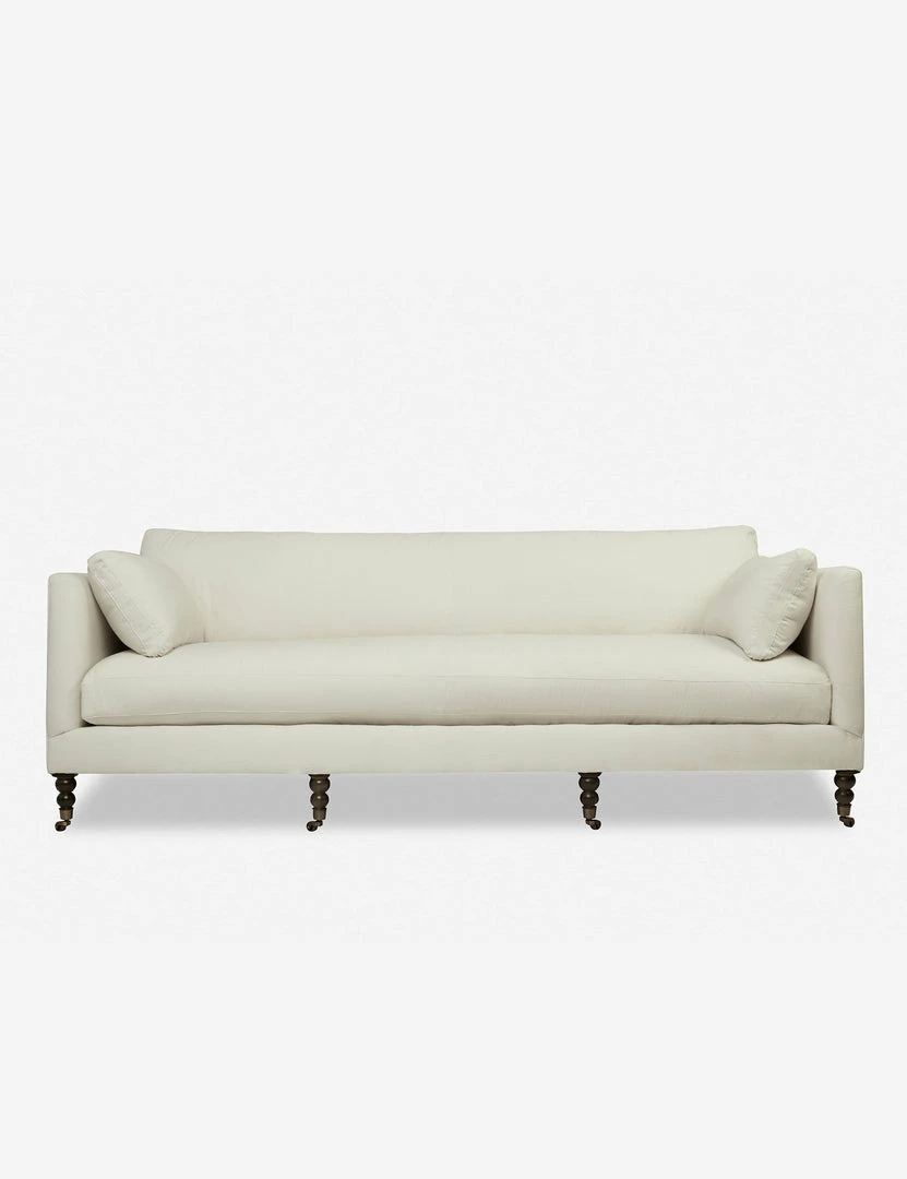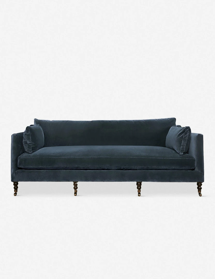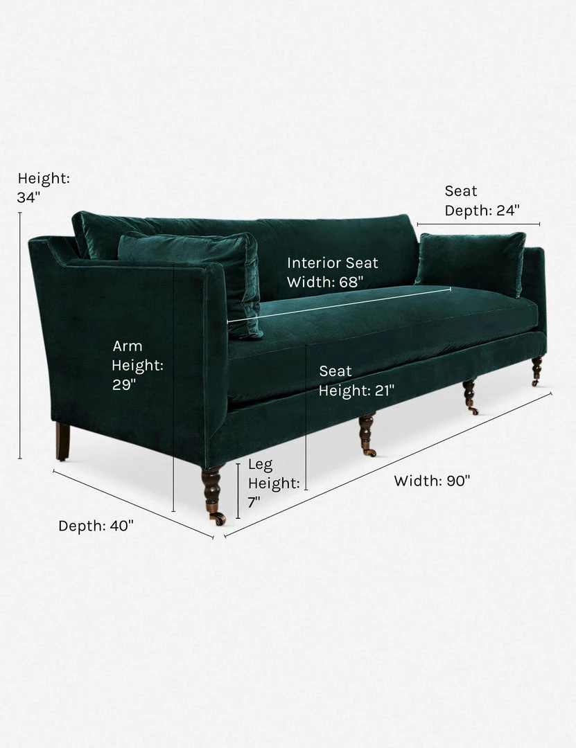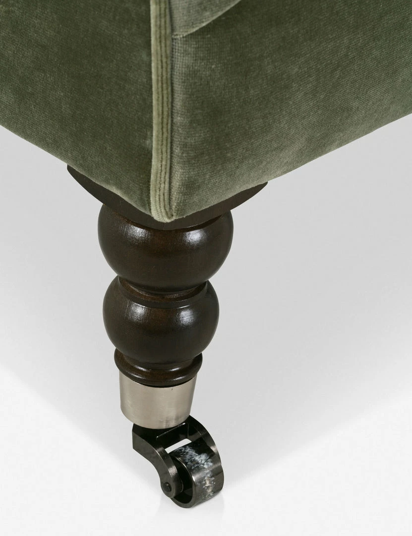 Add a touch of vintage flair to your living room or office with the Fabienne statement sofa. Antique, muted velvet meets traditional curved legs in the back and ornate shaped legs in the front of this plush couch. Finished with small front wheels to ease movement.