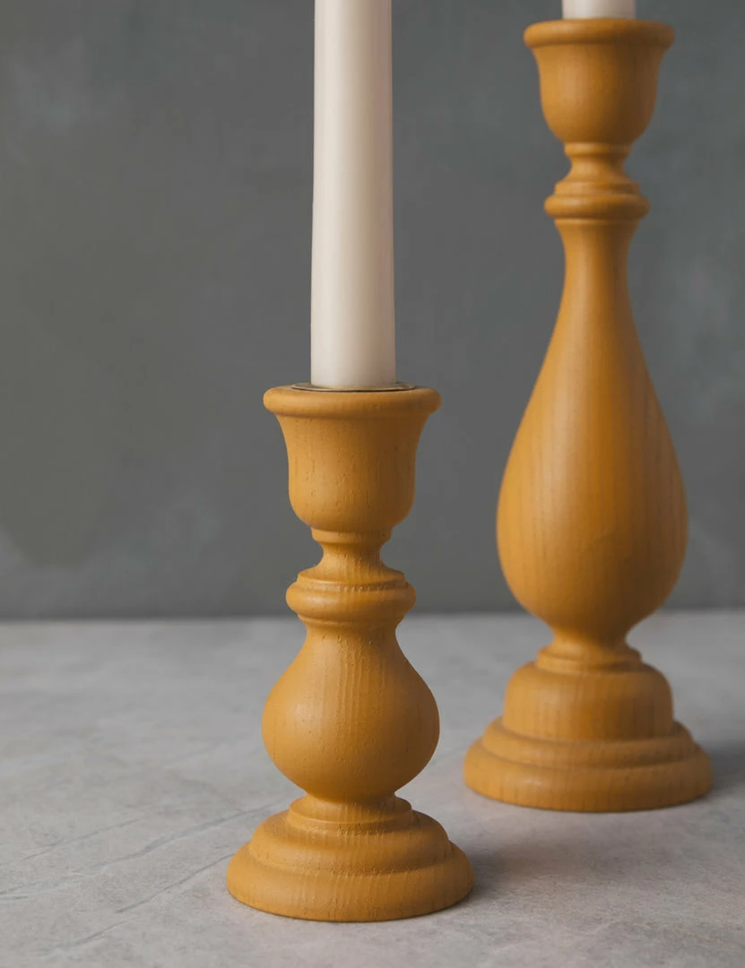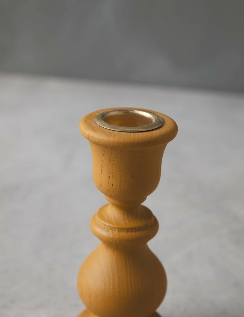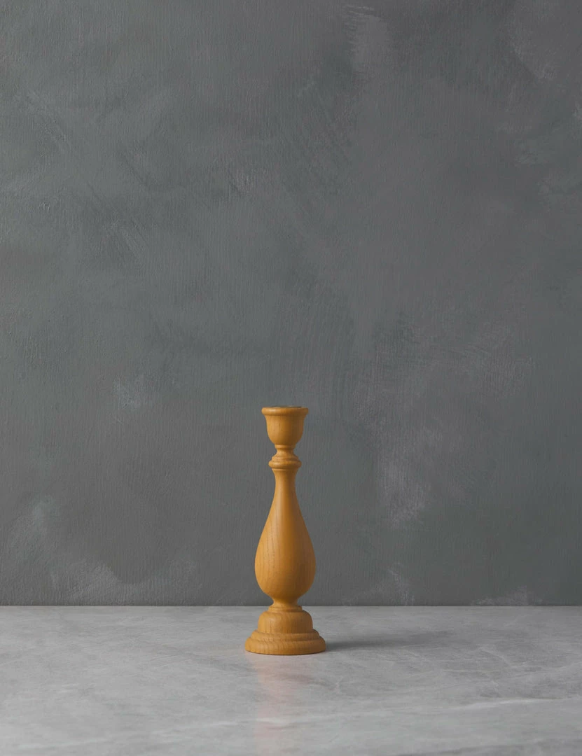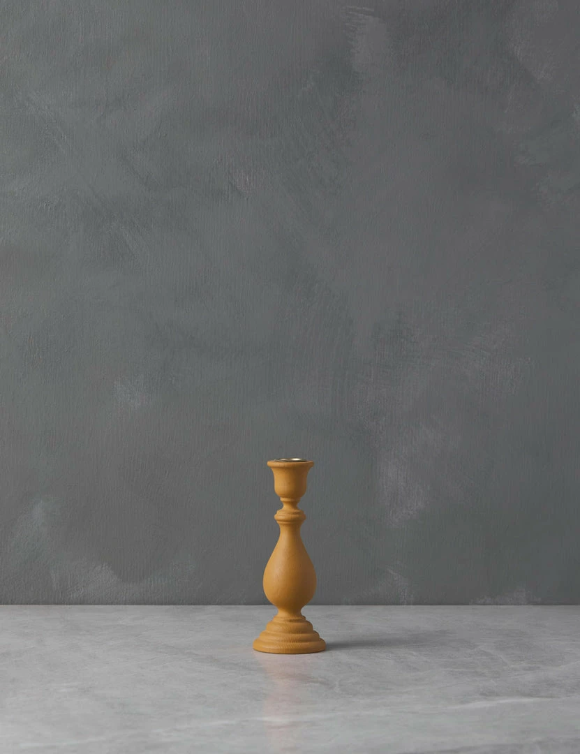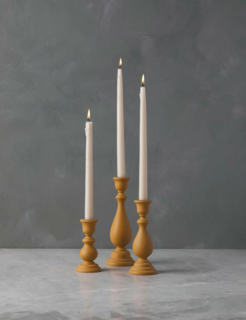 Vermont-based ceramics studio Farmhouse Pottery creates handcrafted accents and table essentials with rustic charm. Lathed from northern white ash wood and finished with a rich paint finish, these candle holders inspire a classic look with a timeless silhouette. Whether balancing a mantelpiece vignette or elevating a fully set table, this set of candle holders is a splendid touch for a warm decor.