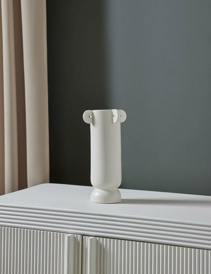 Bring a fine, earthy layer to your decor with this ceramic vase. A textural matte glaze complements the refined grooves of the shape, while the white finish offers a delicate touch. We love the tall silhouette to add dimension to a tablescape—add even more height with a dried botanical arrangement.