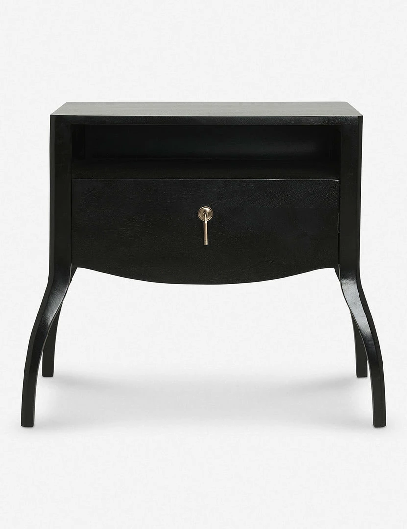 Elevate your space with the dramatic curves and clean-edged silhouette of this nightstand from the Anabella collection. An open shelf and spacious drawer pair sleek elegance with practical appeal in this dark-finished bedside table.
