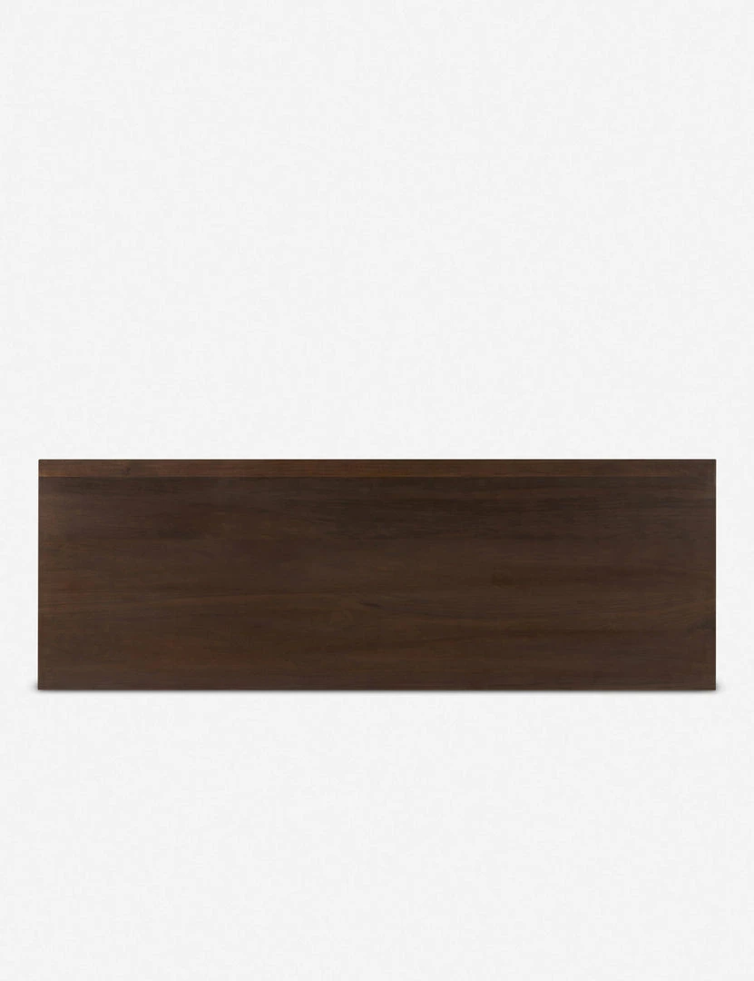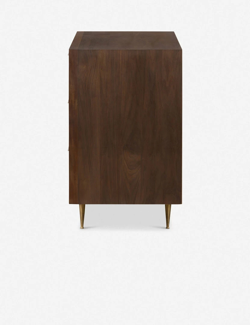 Ground your bedroom or morning space with the understated beauty of this spacious six-drawer dresser. A clean, streamlined design with modern undertones is clad in a walnut veneer with a dark chocolate finish, then fitted with brass-polished drawer pulls and legs for a lustrous accent.