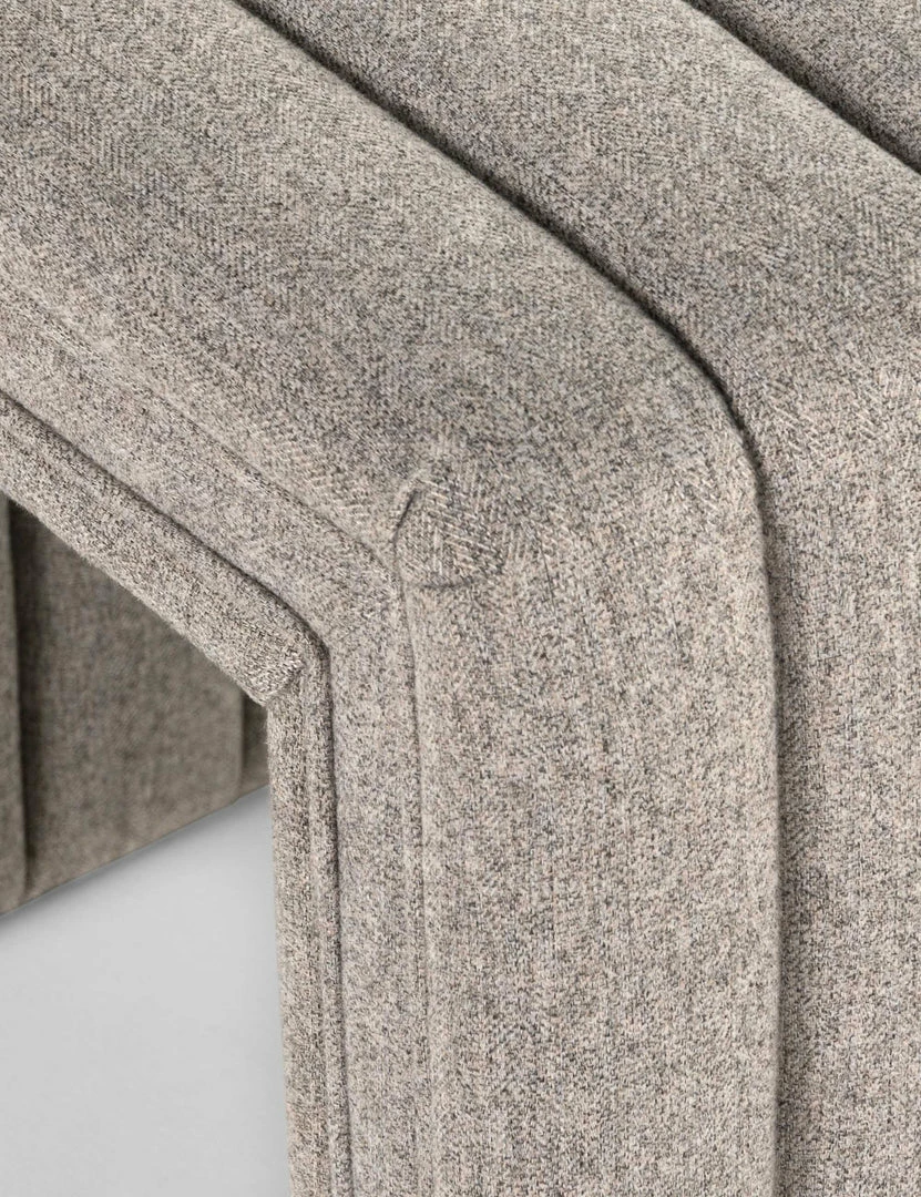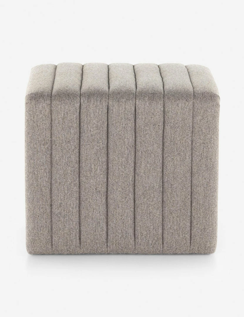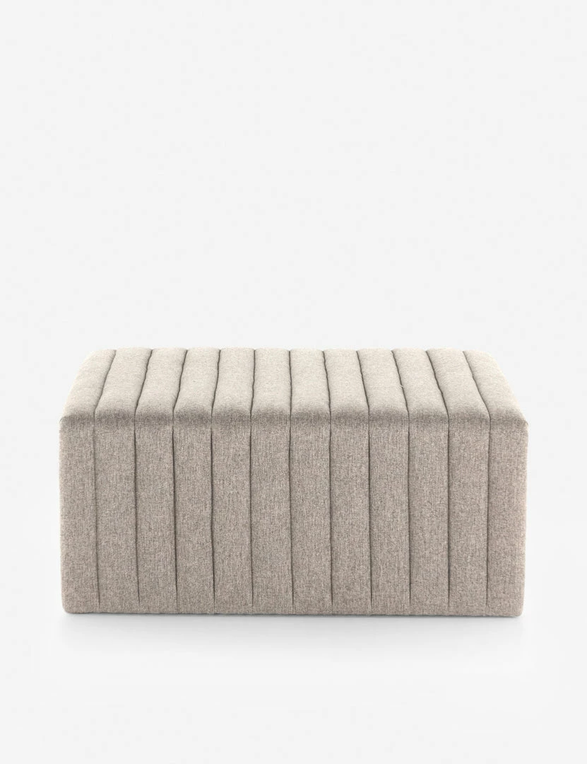 Upholstered in a heather gray fabric with channeling for crisp, understated texture, this ottoman will elevate any cozy space with its tailored lines and clean profile. With a large soft surface, this ottoman can be a dynamic fit for sprawling seating or even styled as a coffee table in a laid-back living space.