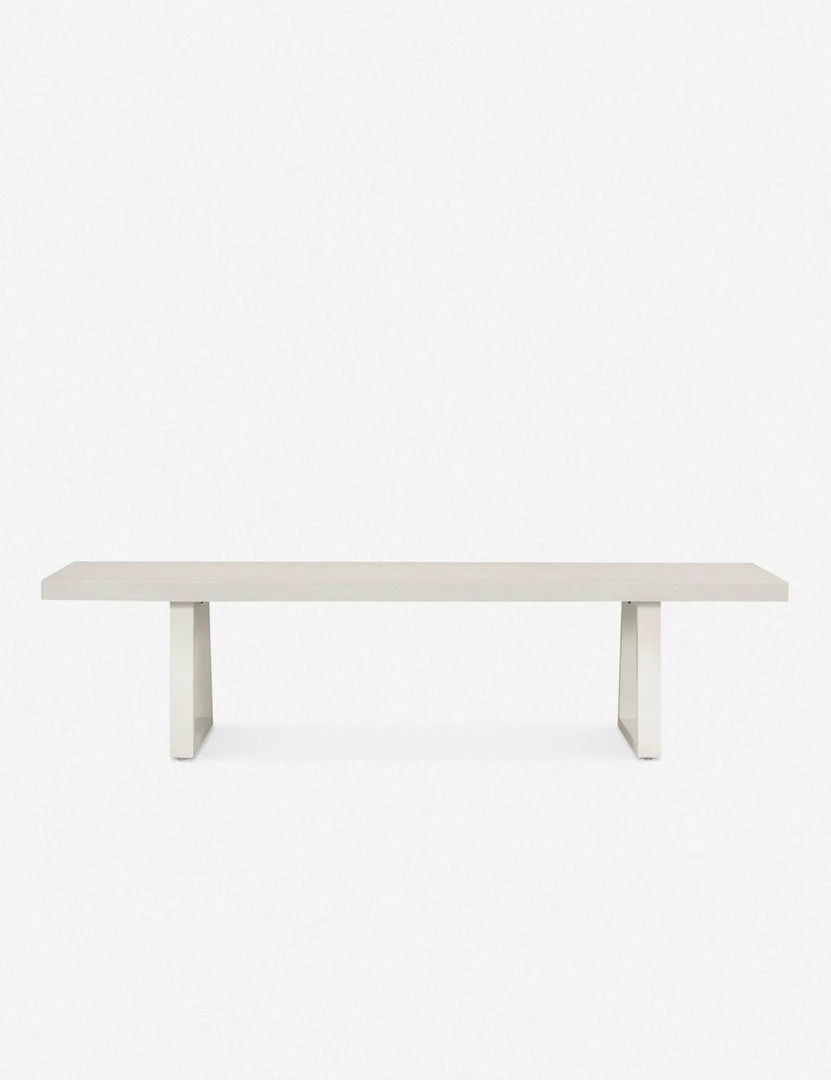 Add this dining bench to the mix for modern style indoors or out. Featuring a lava stone top and angular iron legs, this dining table bench has a minimalistic look with an industrial edge. Style this bench at your outdoor table, in the garden, or wherever you need sturdy seating or an extra spot for plants and decor.