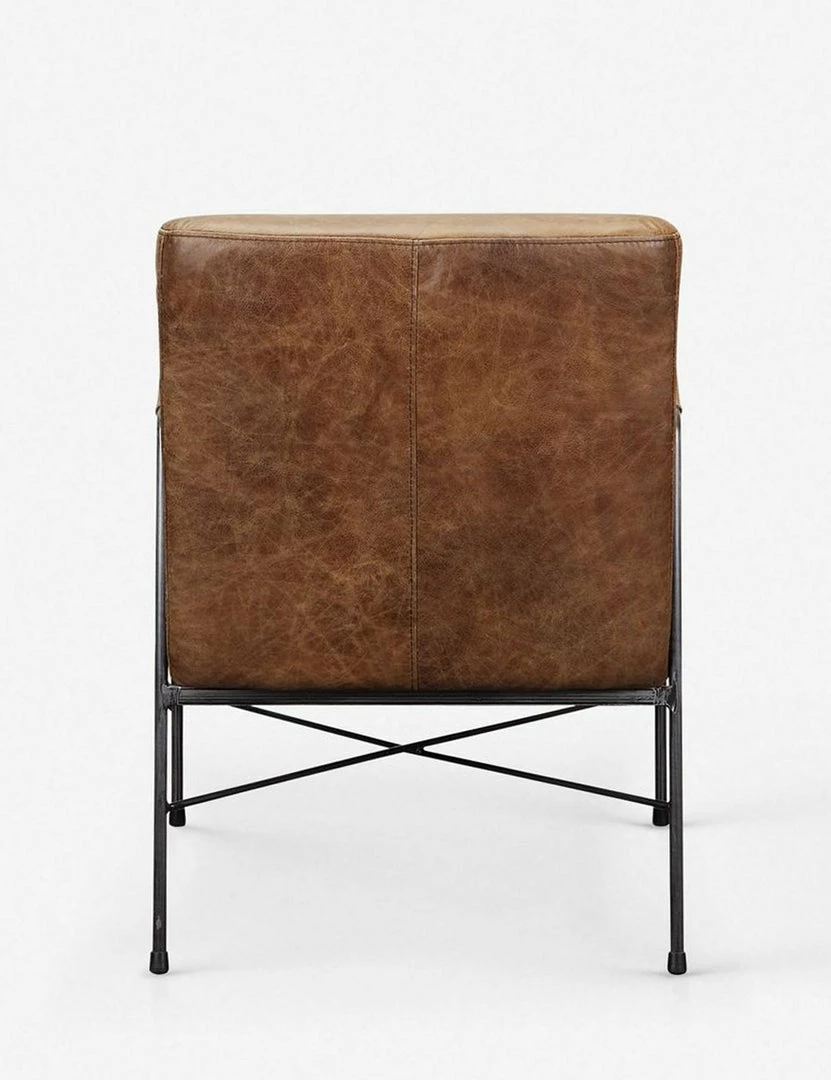 A timeless chair with a nod to industrial style, this arm chair is a must for modern living rooms. Upholstered in a distressed brown leather with a slim metal frame, you’ll love this piece for years to come.
