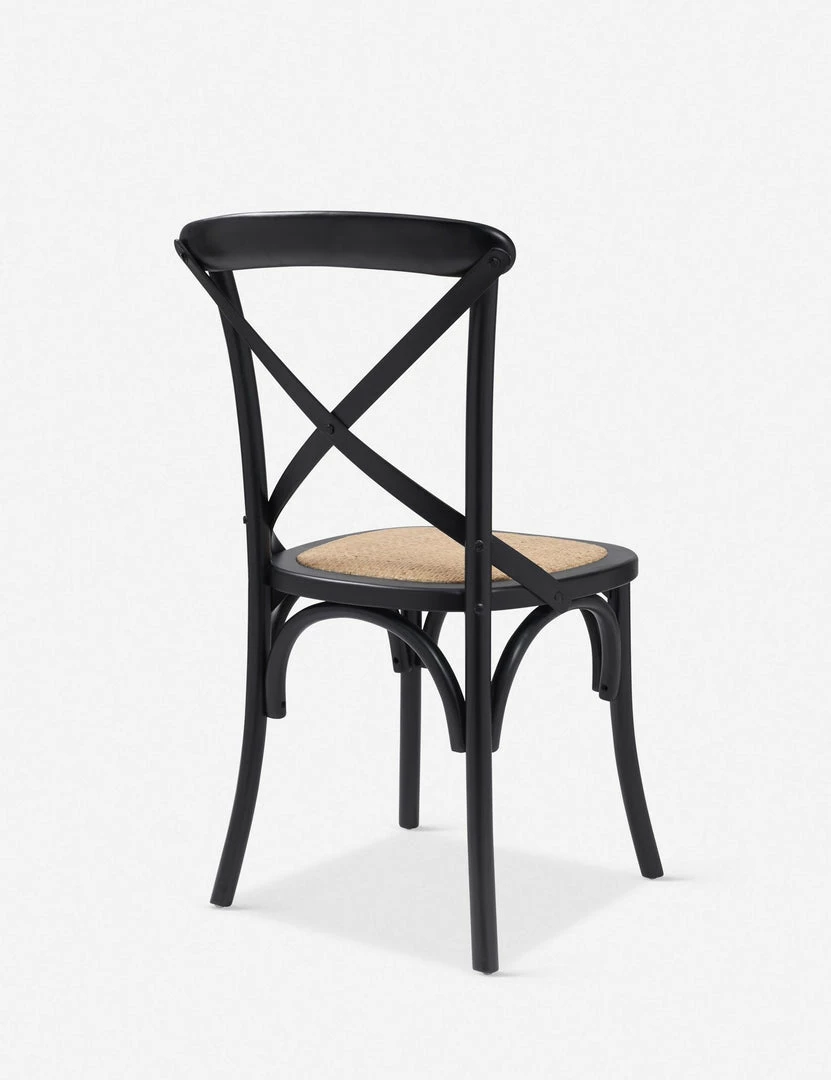 Sophisticated yet welcoming, the open design and casual crisscross back make this chair an excellent choice for both transitional and contemporary dining rooms. Complete with a woven cane seat and curved backrest.
