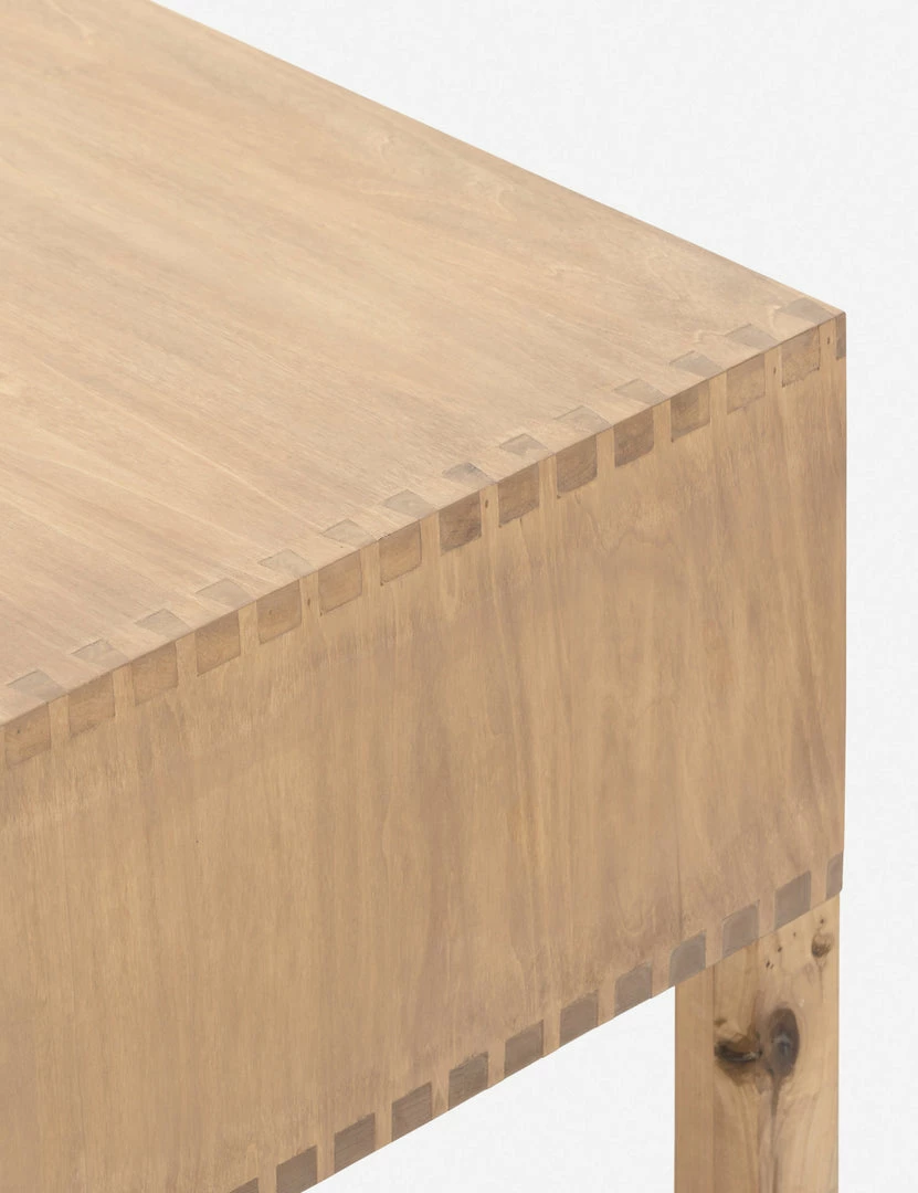 Simply inspired, this solid dry-washed poplar coffee table combines clean lines with dovetail joints in a Shaker-inspired design. This wood coffee table is finished in a light neutral tone and fitted with iron and leather hardware and push-through-drawers for dynamic storage in a versatile, understated style.