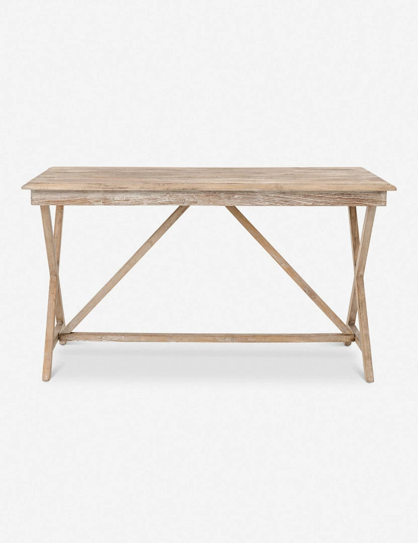 With a rough-hewn trestle design, this whitewashed desk casts a spare architectural profile. The warm, natural texture of the reclaimed elm construction will bring a French-inspired charm to your workspace for a look that feels organic and open.