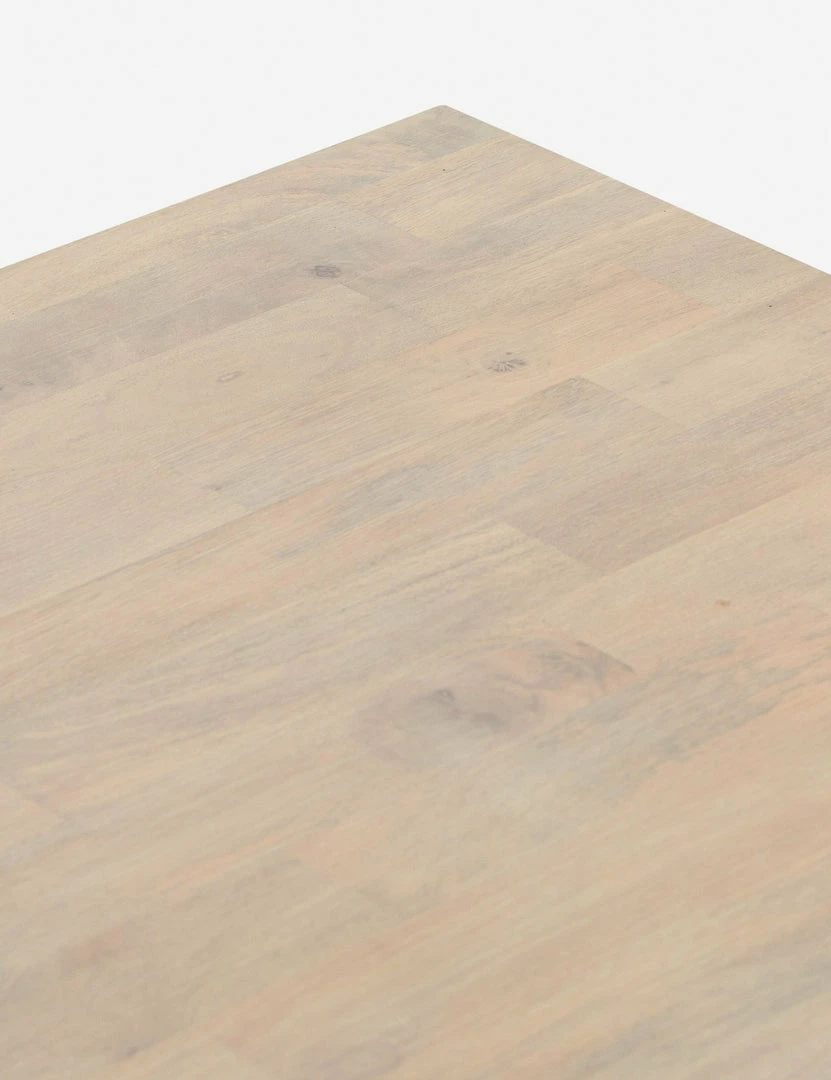 A timeless, clean-lined silhouette is elevated by detail-rich wood grain and woven cane drawer fronts to create this Margot Modular Desk. Crafted from natural mango wood, its whitewashed finish complements the seven cane drawers for a tonal storage piece. With its massive amount of desktop space and plenty of roomy storage, this workstation completely transforms your home office.