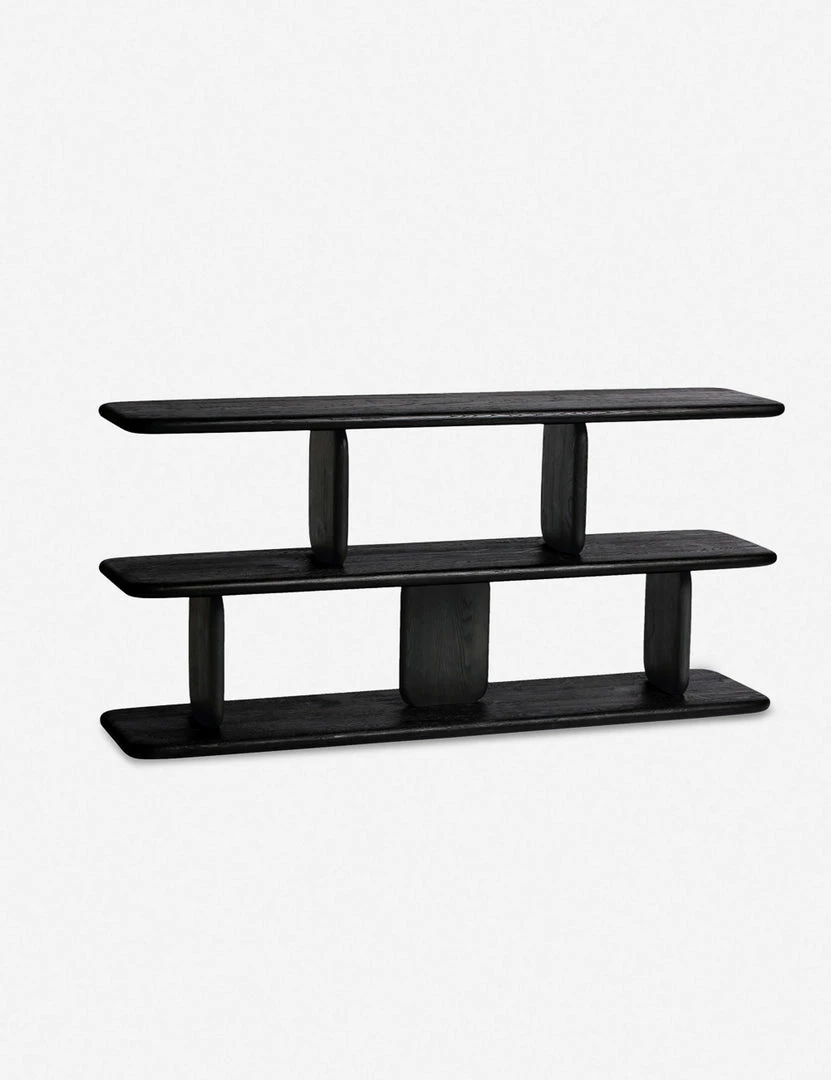 This short bookcase features staggered support pieces with interesting woodgrains and rounded corners for a softer, more approachable look that’s the perfect perch for your favorite books and decor. The low profile is just the right size to become a sculptural console table with extra space for storage and display.