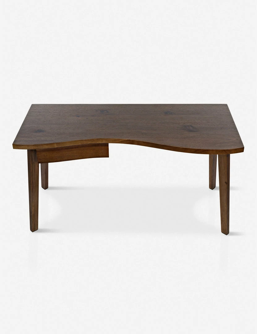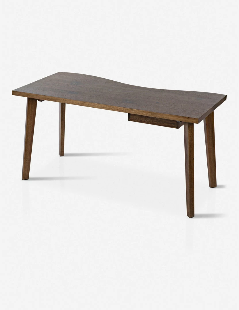 An A-frame base juxtaposed with the curved desktop proves once and for all that opposites do attract. This walnut desk, complete with an under-desk drawer is perfect for the home office with a warm, mid-century feel.