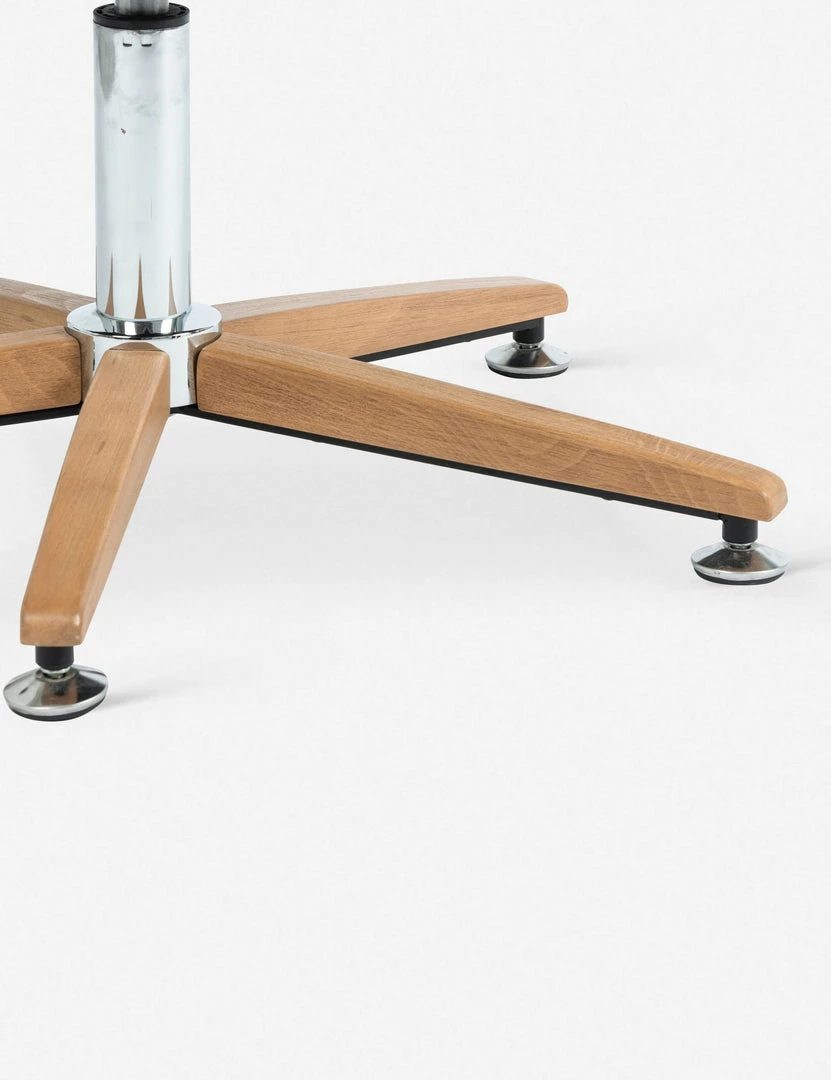 Whether you’re talking corner office or home office, this contemporary desk chair makes a stately statement. Tailored upholstery pairs with a beechwood base for a sophisticated look that gets the job done.