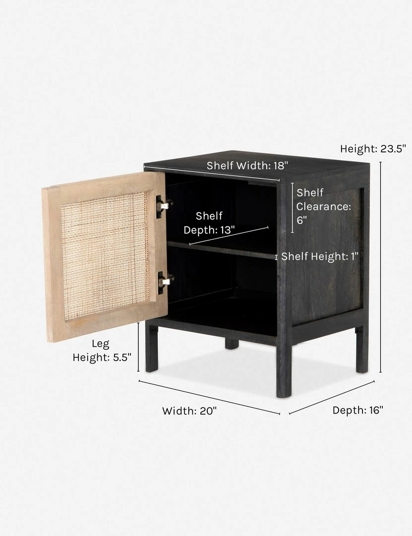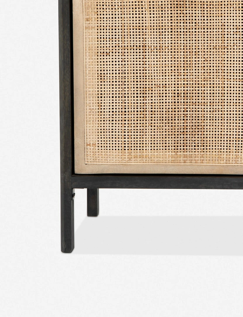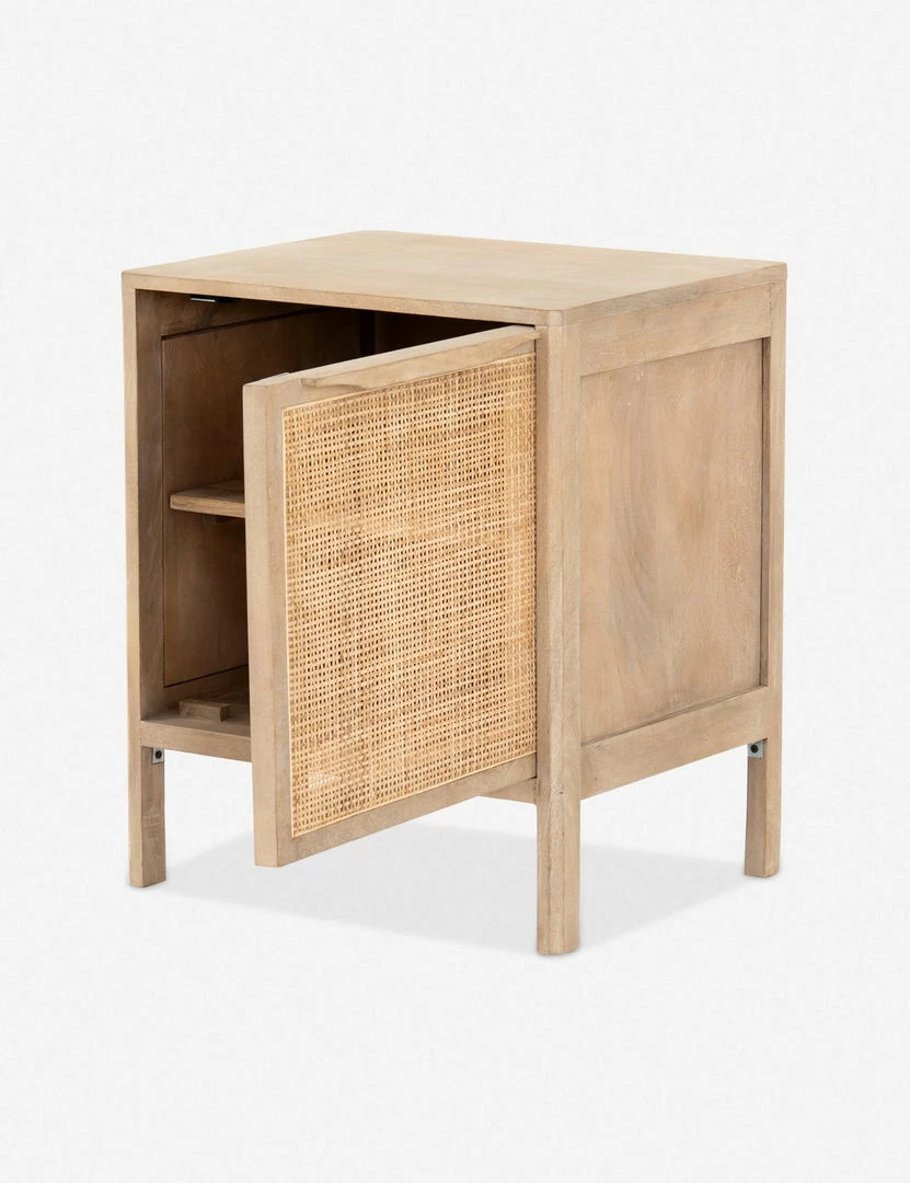 A sleek, square silhouette is a minimalist way to elevate a bedroom without too much formality. The woven cane door offers gorgeous tonal variations for added texture, and we love the practicality of an easily removable shelf.