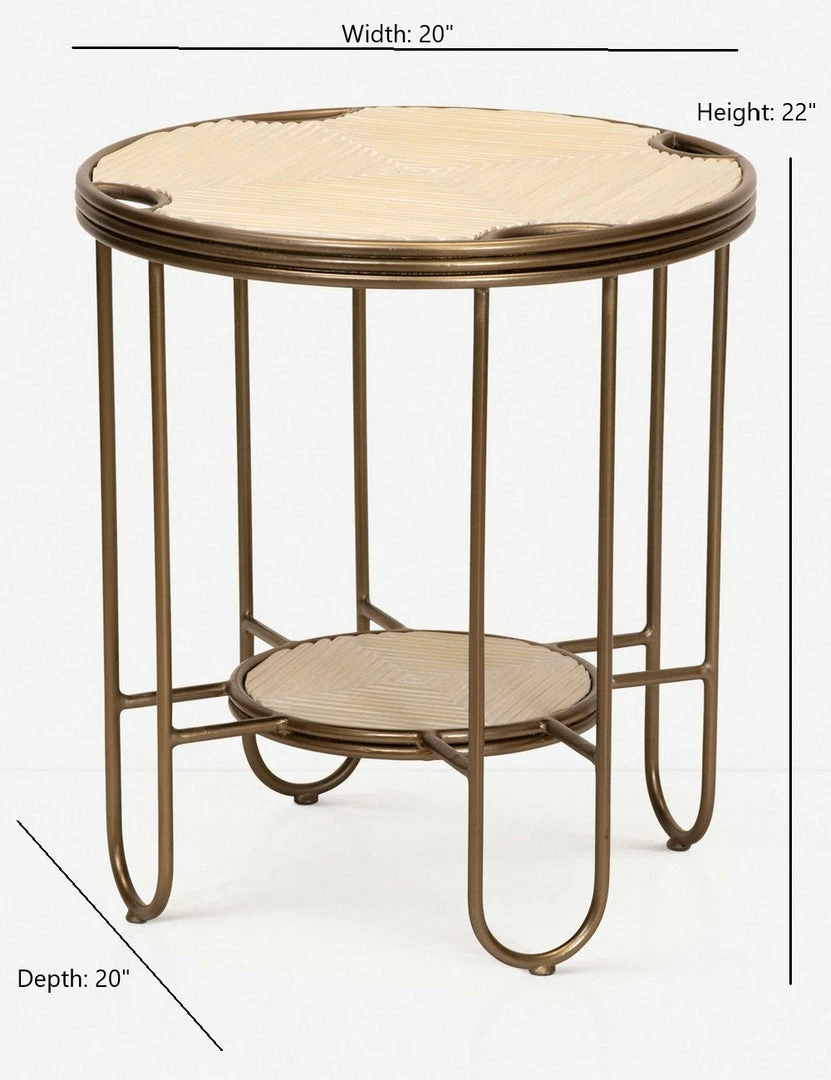 Combining all of our favorite elements of Art Deco style and natural materials, this round, tiered side table is a luxe statement with diamond-textured rattan and a curvy bronzed steel frame. It looks amazing topped with your favorite houseplant or a bold sculpture.