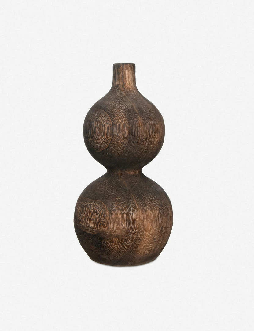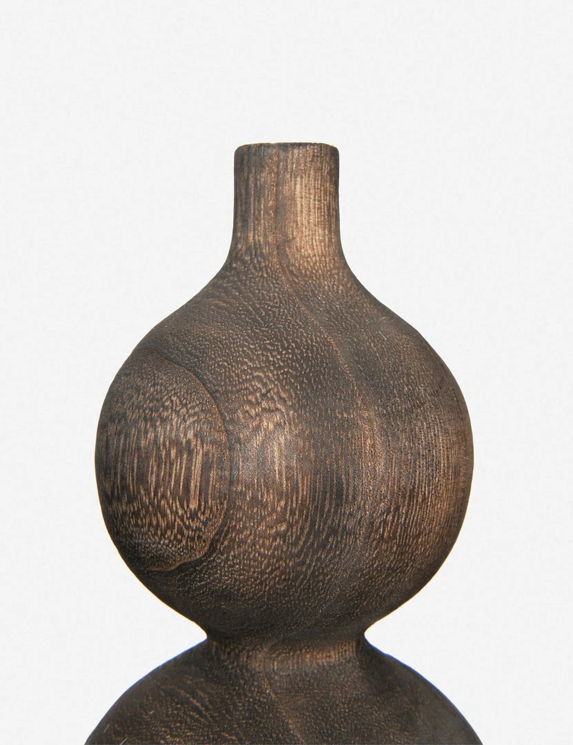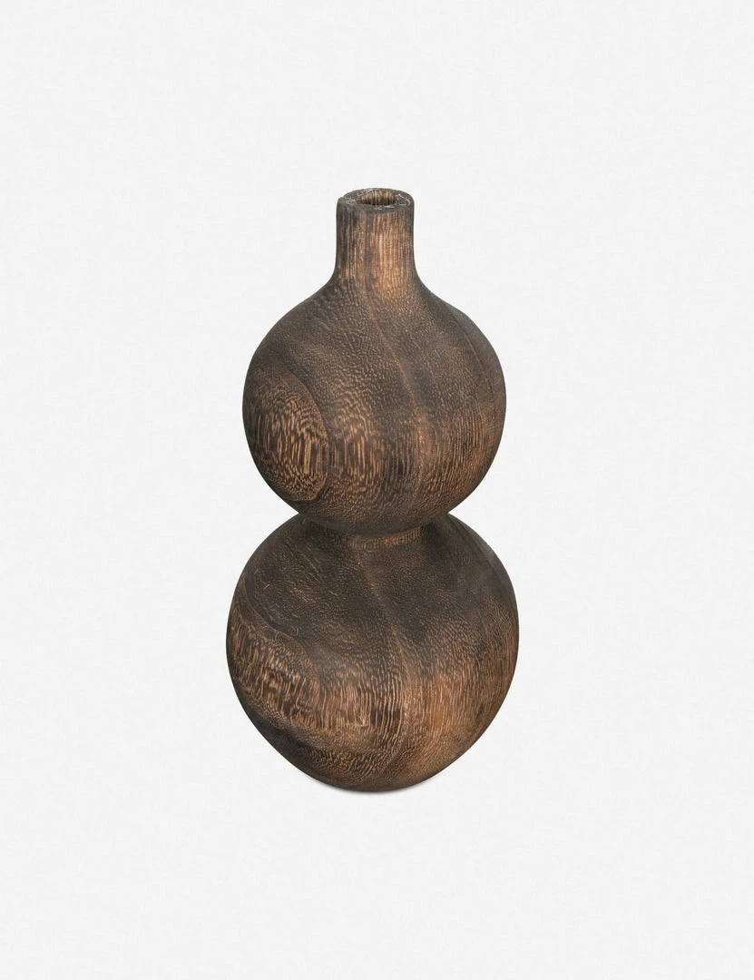 The dark stain finish and rich woodgrain perfectly complement the curved form of this vase. It looks great on its own, but livens up a room when paired with a few green sprigs or with a full bouquet.