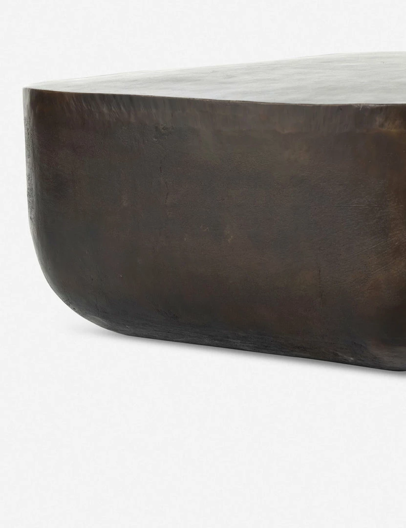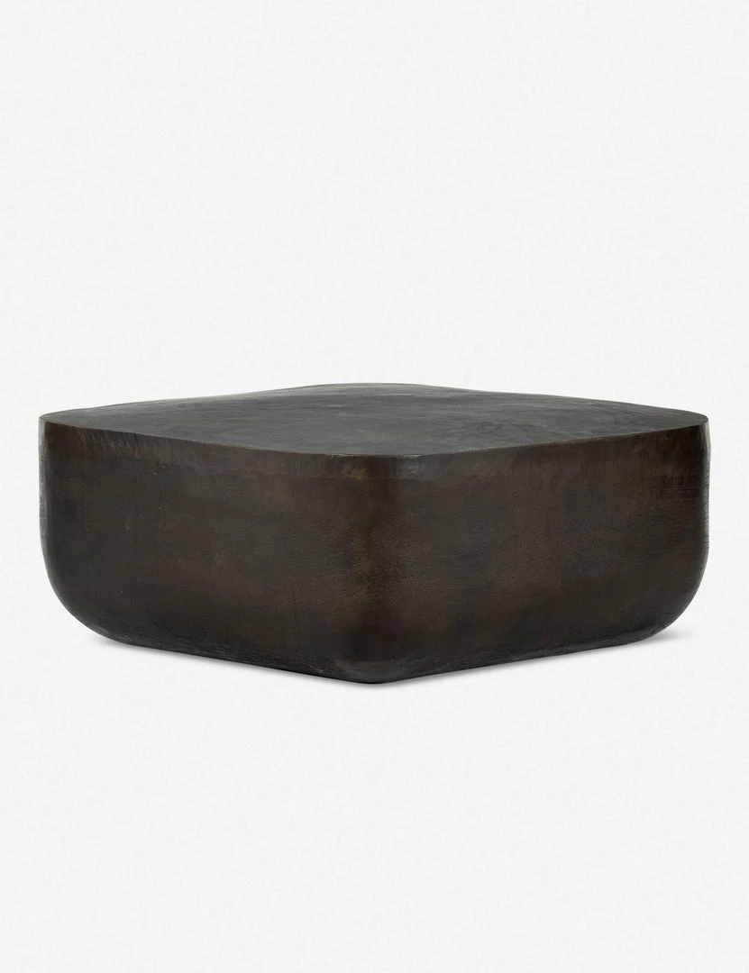 An antiqued finish sets off this monolithic coffee table design with a sleek, textural depth and moody tone. Ground your living room or create an outdoor centerpiece with this statement-making middle table.