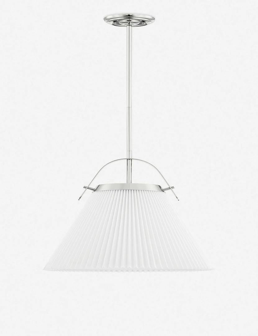This chic pendant light updates classic notes with a modern, streamlined silhouette. The sleek metal down rod and collar holds a ruffled Belgian linen shade to cast a beautifully diffused light in a pendant design that’s set for transitional appeal.