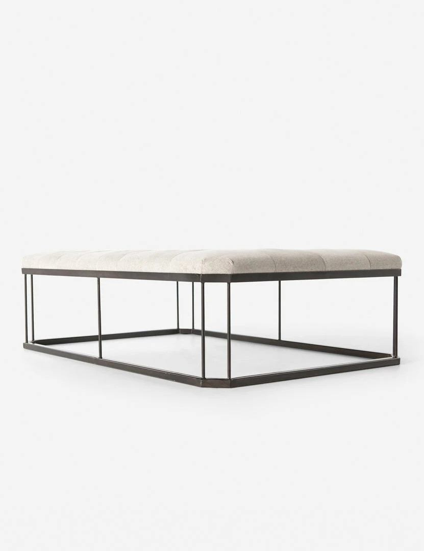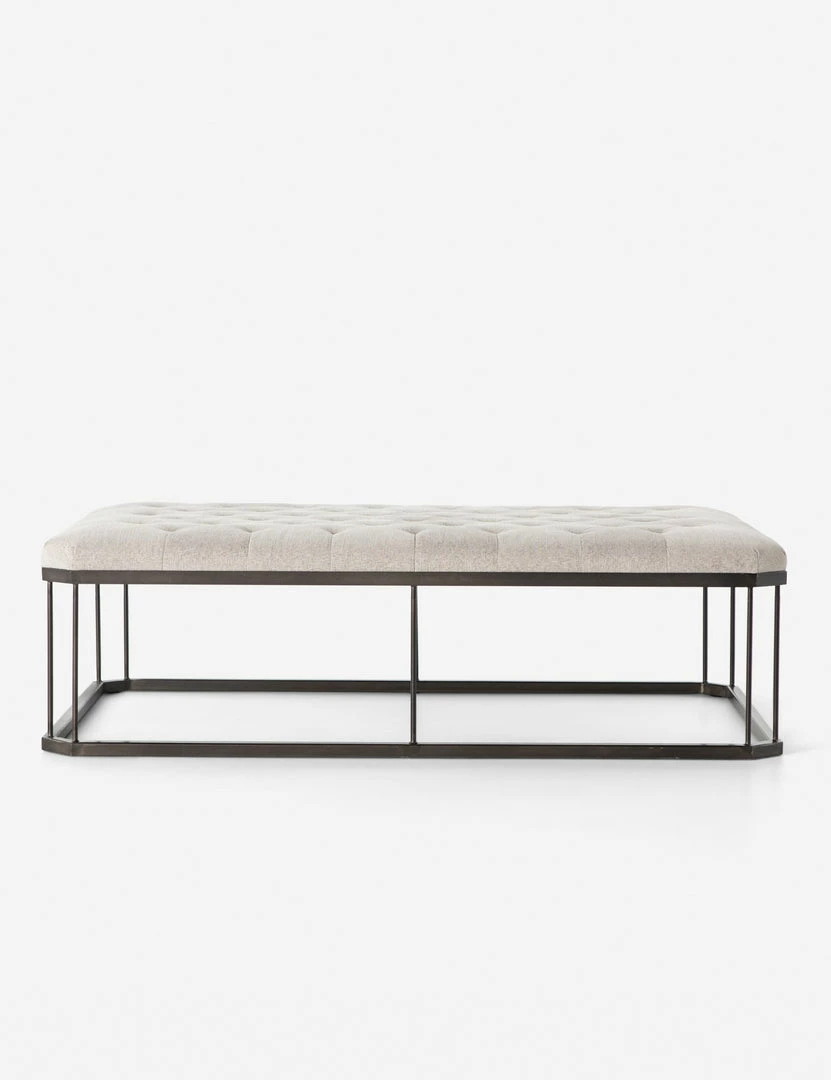 Perfectly balancing timeless luxury and industrial aesthetics, this tufted ottoman is the ultimate statement in cool, modern living rooms.