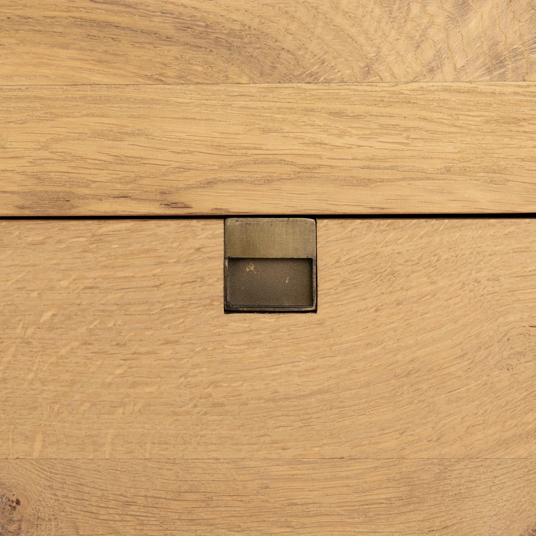 Combining streamlined design and retro details, the Karma collection is ideal for modern spaces. This dresser features cutout details, natural oak variations and thin brass legs.